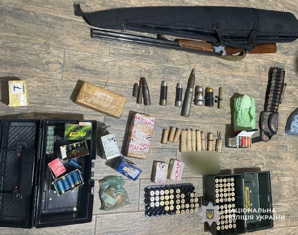 Цього ж дня за місцем мешкання фігуранта вилучили 12 гранат різного типу, серед яких гранати до підствольного гранатомету, Ф-1, РГД-5 та інші, гладкоствольну рушницю, понад 120 боєприпасів УПГ-8, артилерійські снаряди, більше ніж кілограм пороху та понад 500 патронів. Також вилучено 1,5 тис. доларів, банківські картки, чорнові записи та інші речові докази.