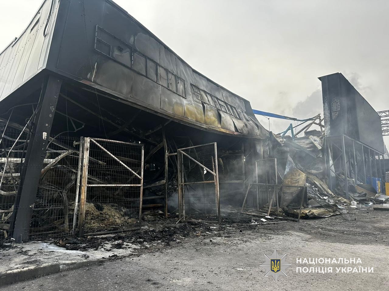 Від ворожого удару загорілося торгове приміщення зовні та у середині магазину площею майже 4 тисячі квадратних метрів. На місце події виїхав екіпаж правоохоронців. Поліцейські спільно з надзвичайниками перевірили наявність можливих постраждалих внаслідок атаки, евакуювали людей з території. На щастя, без жертв. Тривають слідчі дії.