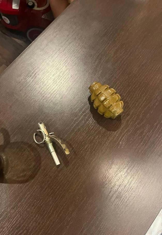 З місця злочину правоохоронці вилучили гранату Ф-1 із запалом. Чоловіка затримали в порядку статті 208 Кримінального процесуального кодексу України.