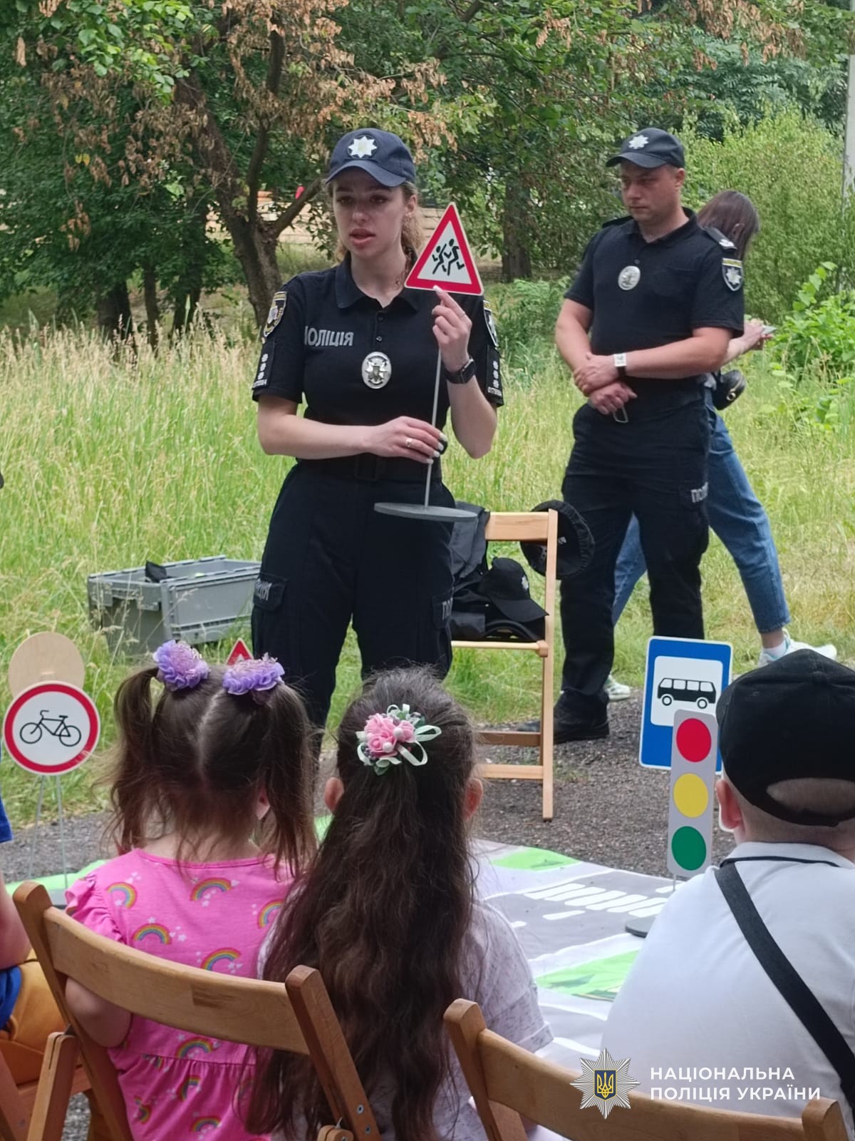 Поліцейські детально розібрали з дітками правила пожежної безпеки, домедичної підготовки та правила дорожнього руху, яких необхідно дотримуватися. Окрему увагу приділили мінній безпеці. Начальниця відділу ювенальної превенції управління превентивної діяльності Вікторія Гаркач наголосила, що при виявленні підозрілого предмета чи боєприпаса заборонено близько підходити до нього, чіпати або пересувати небезпечні знахідки. У такому випадку потрібно одразу повідомити дорослих або зателефонувати до поліції й розповісти про виявлені предмети.