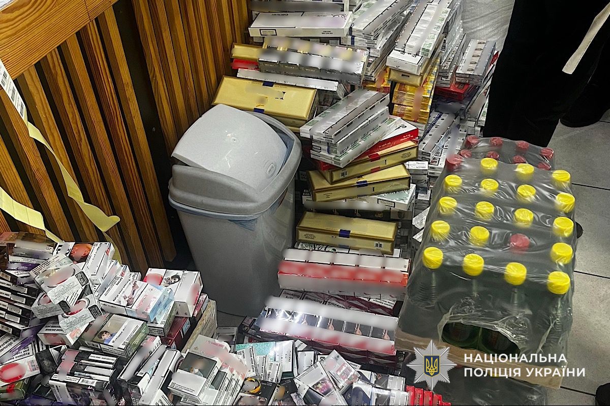 Понад 17 тисяч пачок тютюнових виробів та 850 літрів алкогольної продукції, 20 кг табаку, 90 пляшок рідин для електронних сигарет, гроші, чорнові записи й електронну техніку виявили та вилучили правоохоронці під час обшуків.