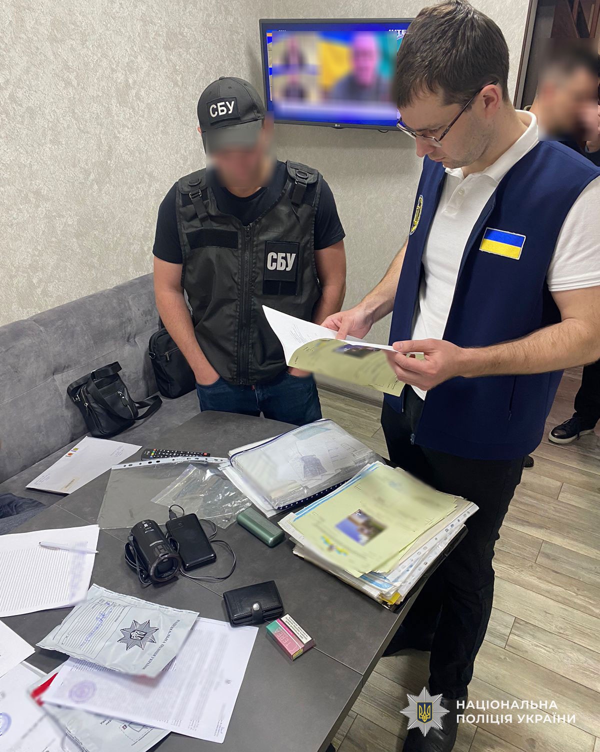 18 квітня поліцейські провели ряд обшуків, у тому числі за місцем мешкання та в автомобілі підозрюваного. В ході слідчих дій вони вилучили чорнові документи, мобільні телефони, 1 700 доларів США, ключі від автомобіля та сам транспортний засіб.