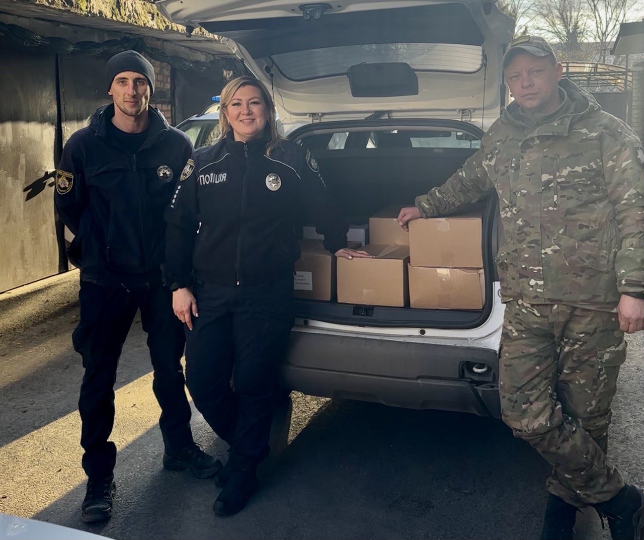 Зимове взуття та теплі устілки, ковдри, спальні мішки, медикаменти та продукти передали поліцейські військовослужбовцям ЗСУ.