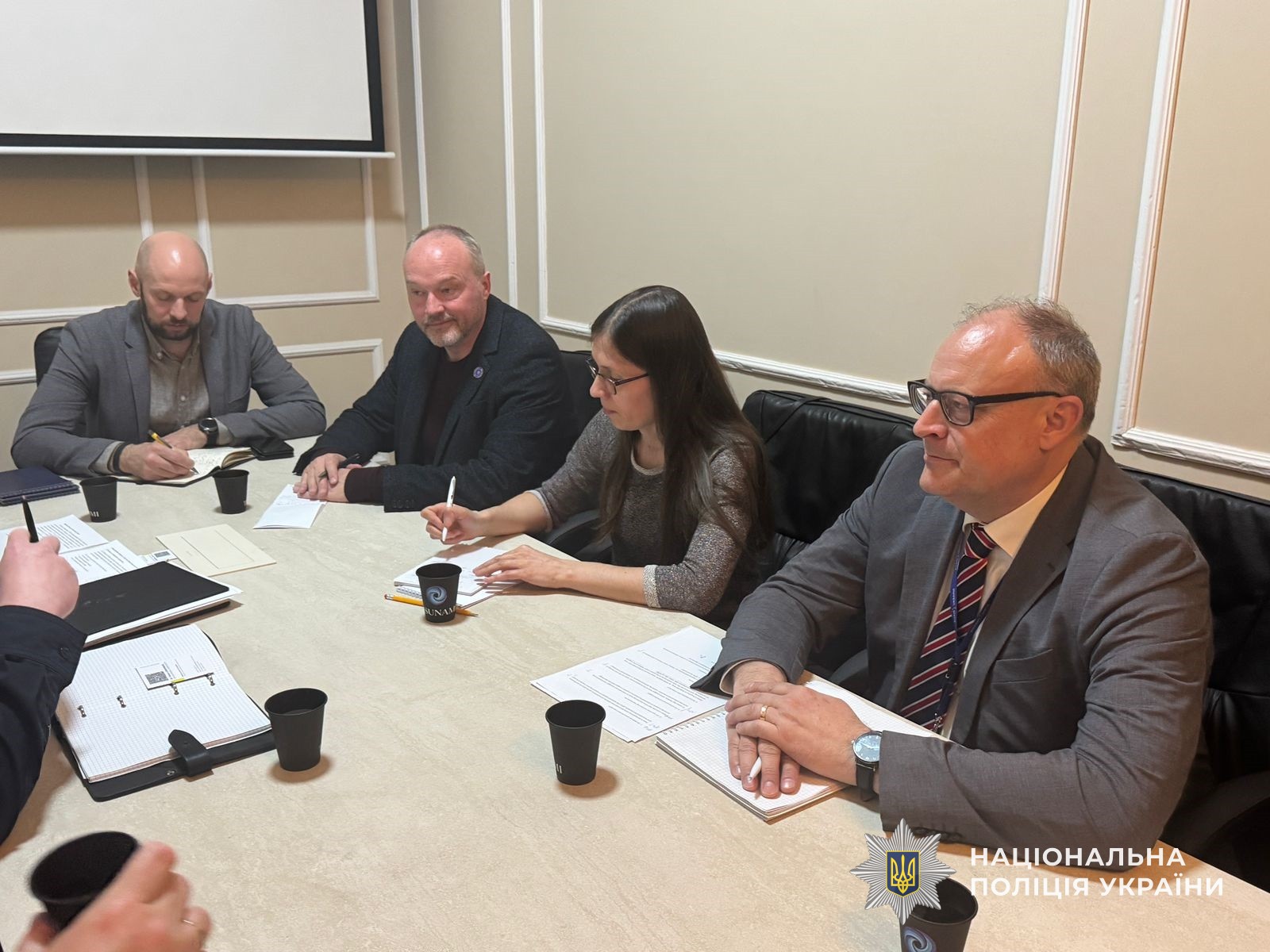 У місті Дніпрі відбувся круглий стіл між представниками Консультативної місії Європейського Союзу за участі радника з питань боротьби з корупцією Фабіана Лювенберга та експерта з питань боротьби з корупцією Богдана Шапки. До обговорення долучилися начальник відділу запобігання корупції Максим Третьяков та начальник відділу міжнародного поліцейського співробітництва Євген Паршутін.