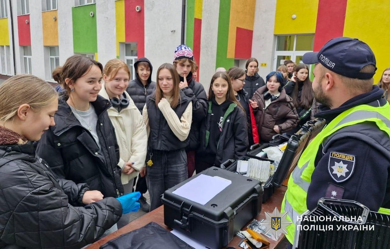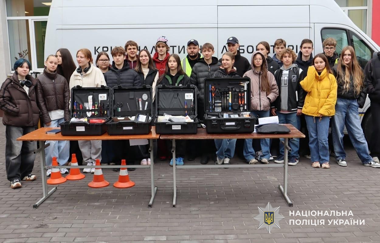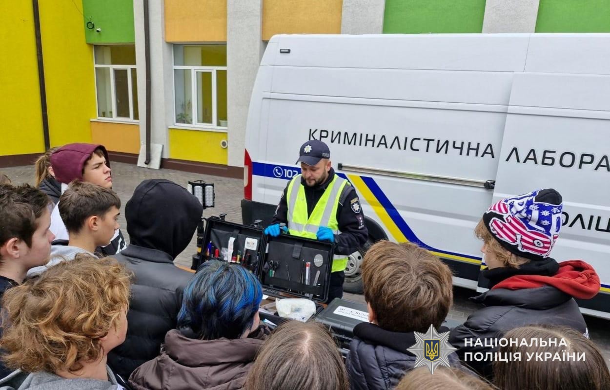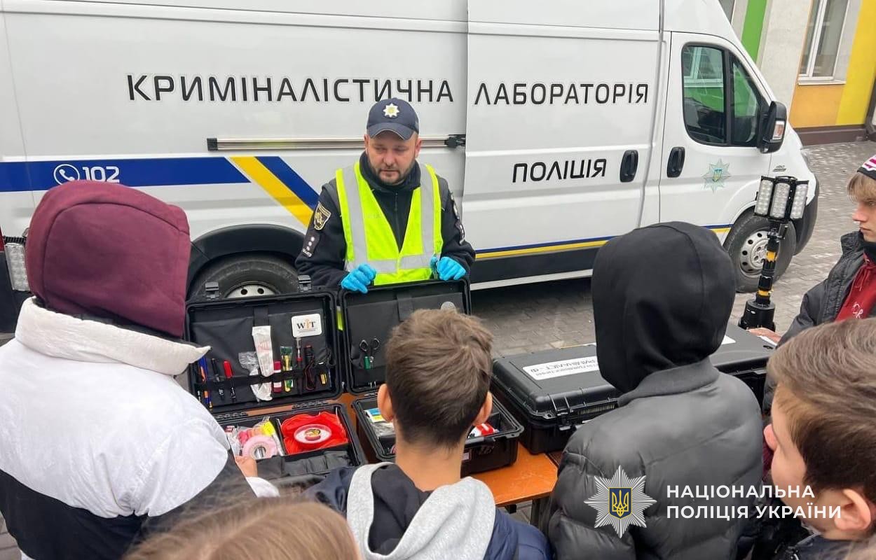 Під час зустрічі поліцейські розповіли учням про роботу криміналістів — як фіксують і досліджують докази, знімають відбитки пальців та вилучають сліди. Діти дізналися, що навіть найменші деталі допомагають викривати злочини.