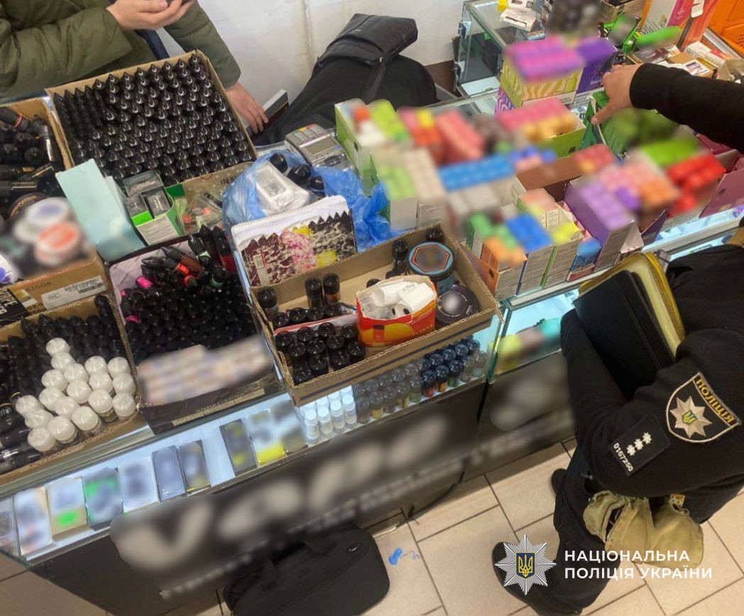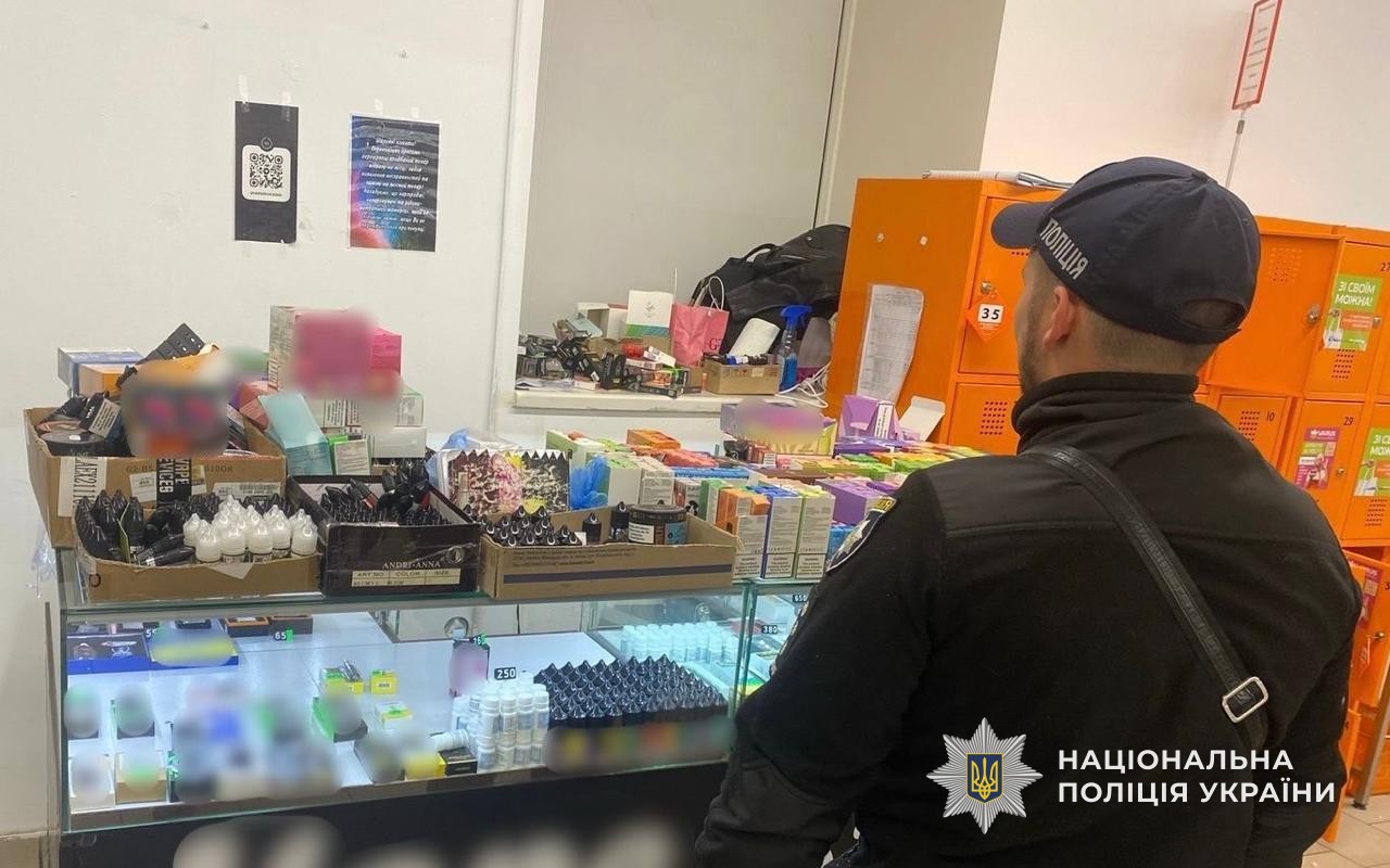 Майже 700 одиниць нікотинових сумішей, 766 штук електронних сигарет, 16 банок сумішей для кальяну, 12 банок з нікотиновими подушечками та нотатки з чорновими записами виявили правоохоронці під час обшуку в приміщенні торгівельного кіоску на території Саксаганського району.