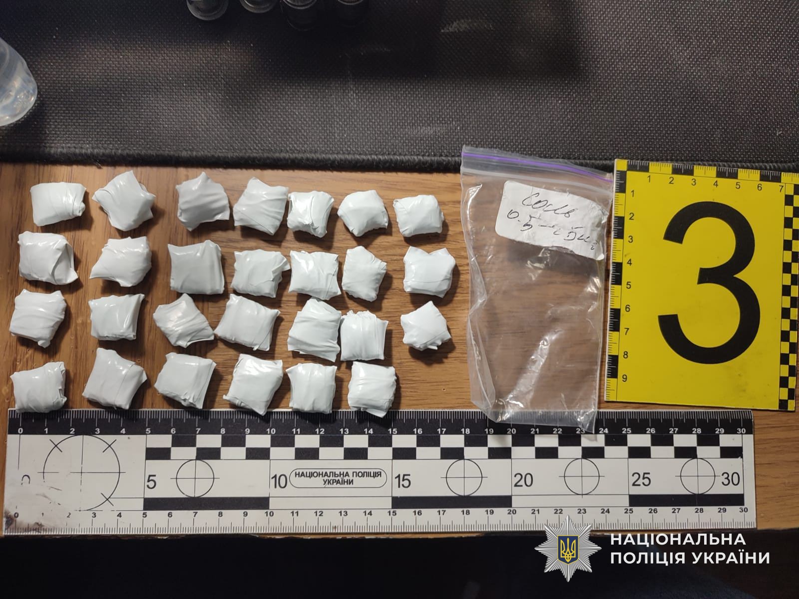 Усе вилучене направили на експертне дослідження. Наркозбувача затримали в порядку ст. 208 Кримінального процесуального кодексу України.