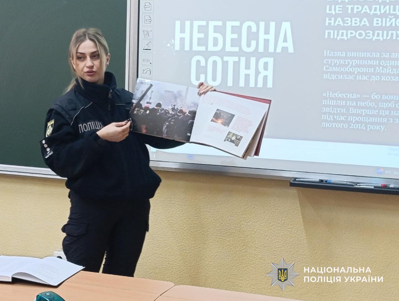 Поліцейські міста Самар провели у школі тематичний урок, присвячений Дню Героїв Небесної Сотні