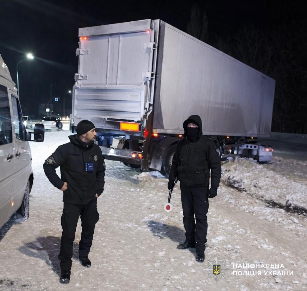 Складні погодні умови стали причиною ускладнення руху на дорогах. Під час патрулювання поліцейські побачили вантажний автомобіль, який через слизьке покриття опинився поза межами проїзної частини та не міг самостійно рушити далі.