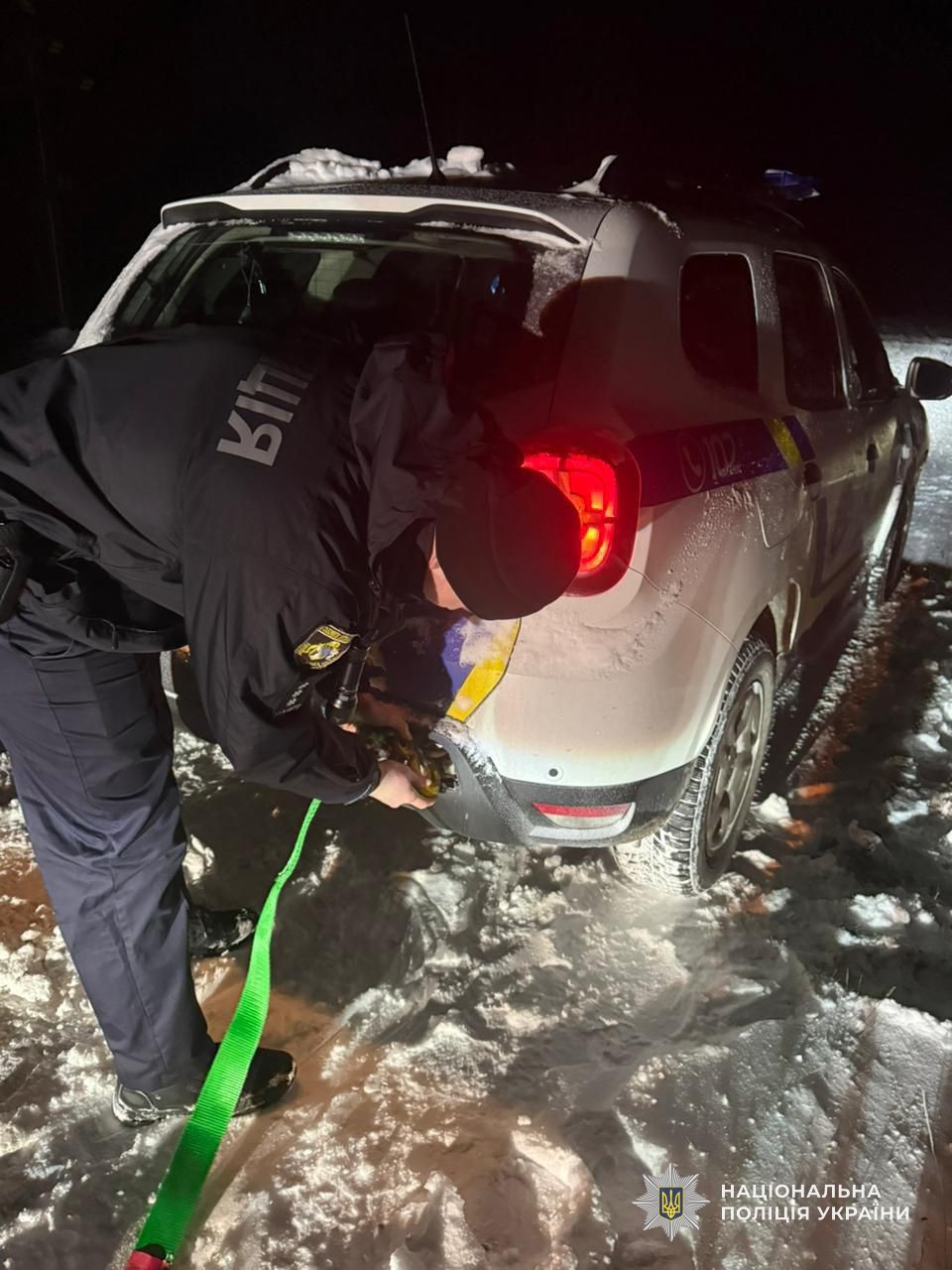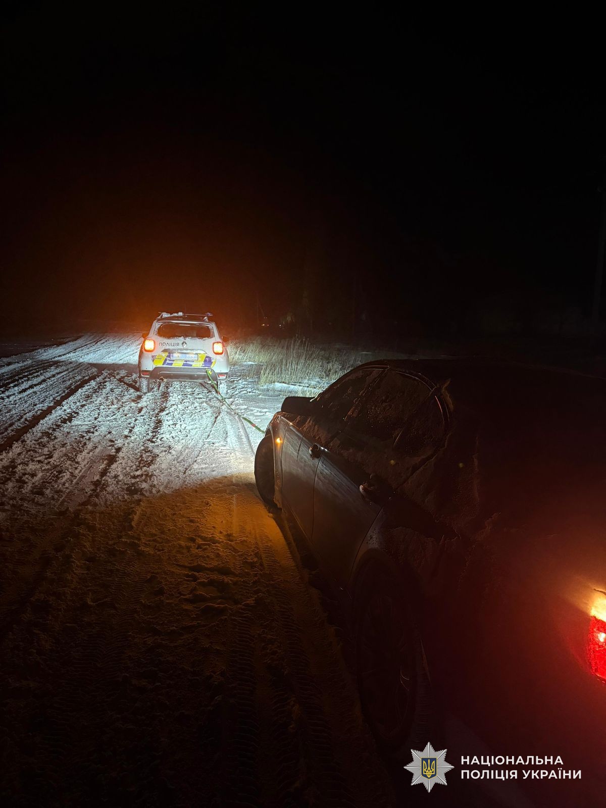 Патрулюючи територію, правоохоронці помітили автомобіль, який через сильний снігопад застряг у заметі та не міг самостійно продовжити рух. Не гаючи часу, за допомогою буксирувального троса вони витягнули автівку на розчищену ділянку дороги, тим самим забезпечили безпеку водія та інших учасників дорожнього руху.