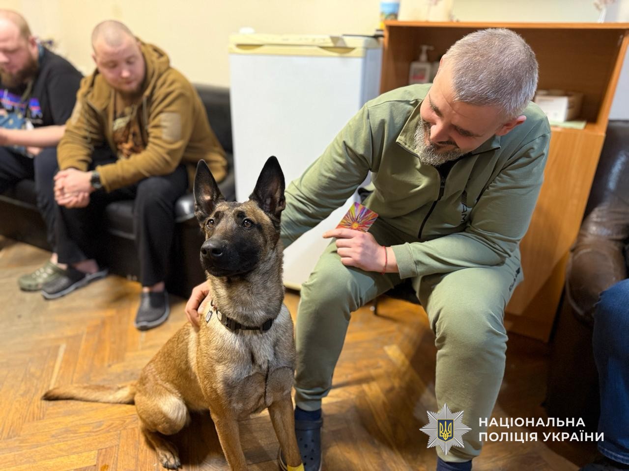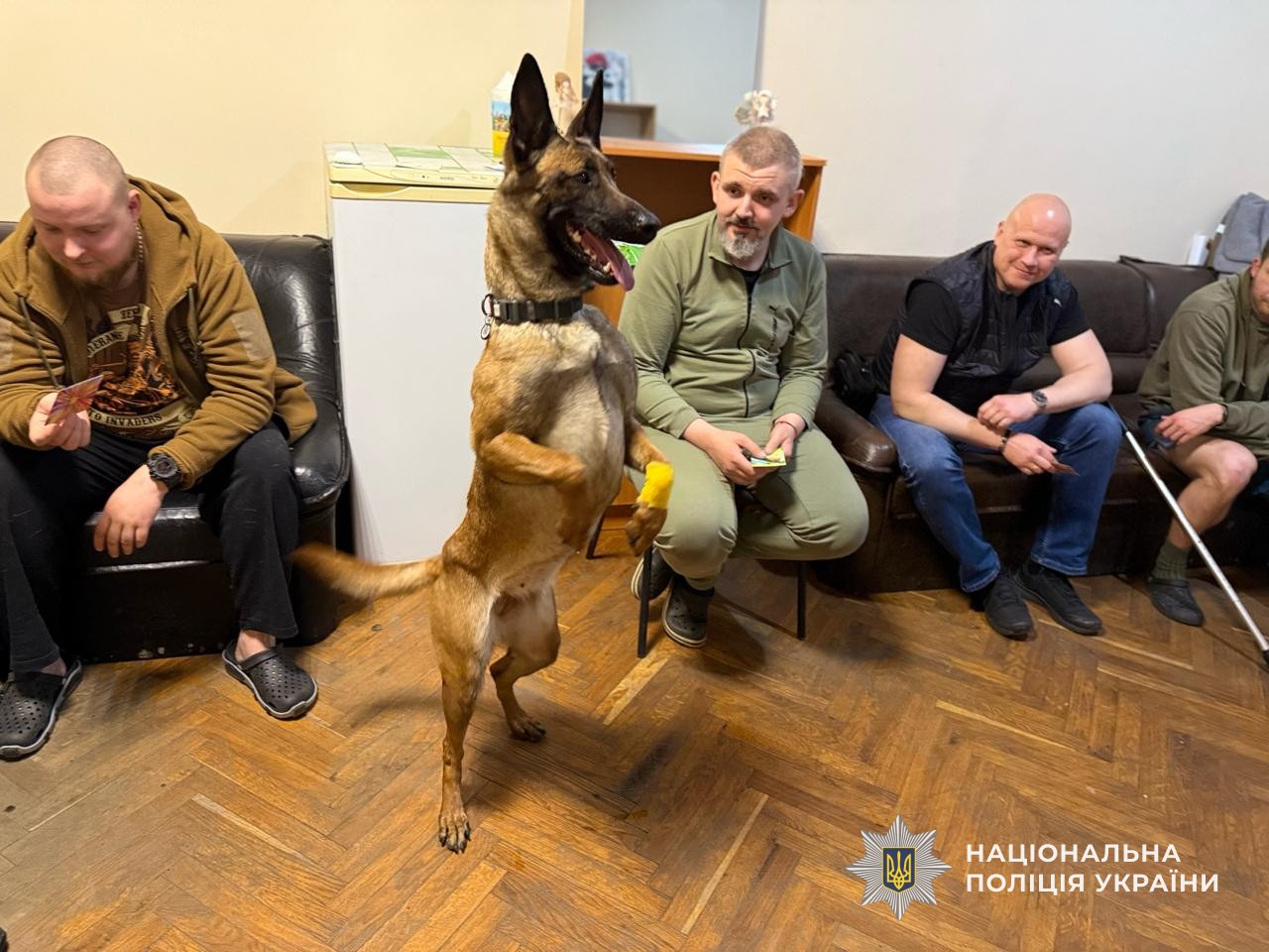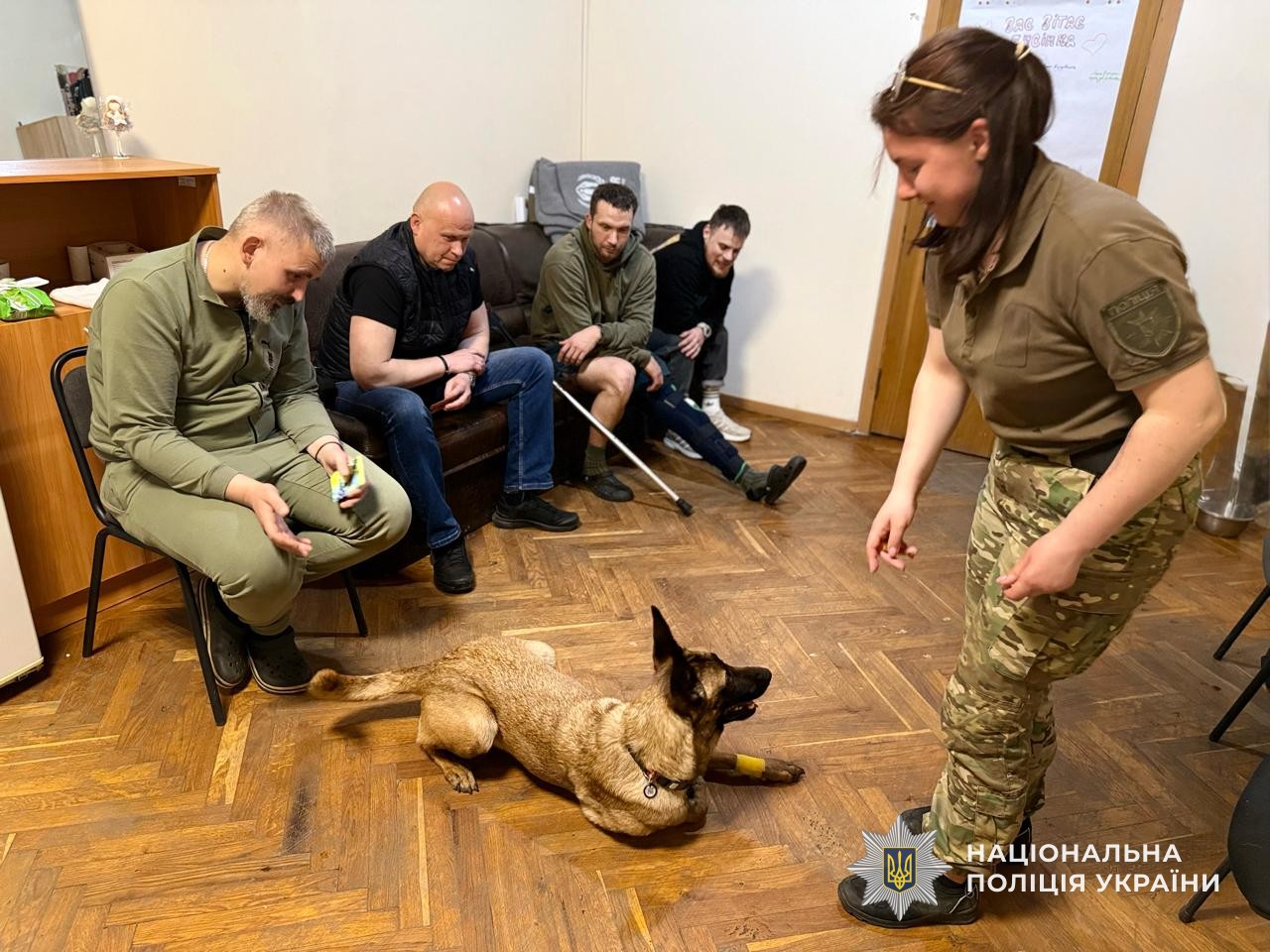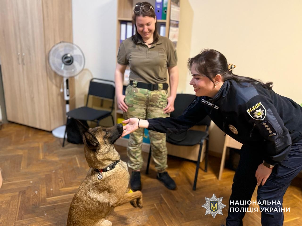 16 квітня поліцейські психологи спільно з кінологами ГУНП провели захід з емоційної підтримки для поранених поліцейських та військовослужбовців. До роботи долучили психологів і кінологів зі службовим собакою.
