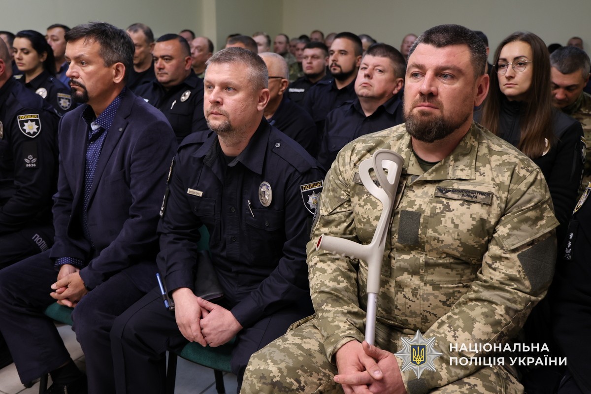 Серед відзначених – віддані службі правоохоронці, які проявили мужність і професіоналізм під час виконання службових обов’язків. Окремо нагороди вручили бійцям полку поліції особливого призначення «КОРД» (стрілецький), які були поранені під час виконання бойових завдань на лінії зіткнення.