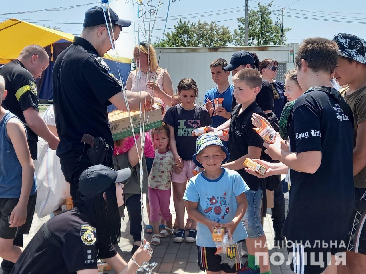 Поліцейські Нікополя влаштували для дітей-переселенців свято з подарунками, ласощами та веселими емоціями
