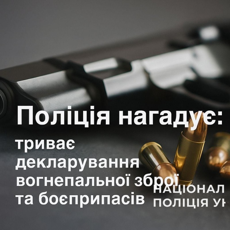 Поліція закликає громадян не наражати себе на ризик та дбати про власну й суспільну безпеку — декларуйте зброю або здавайте її добровільно.
