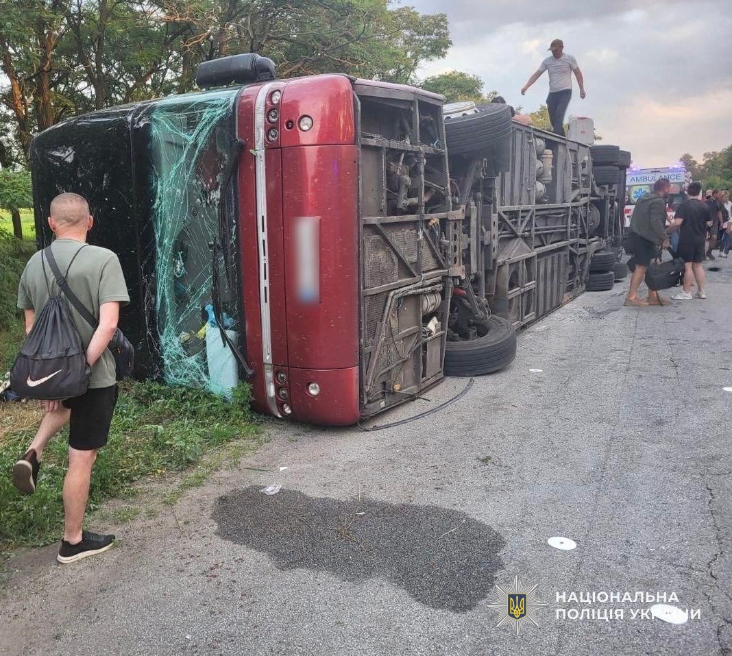 За попередньою інформацією, водій автобуса «VAN HOOL» не впорався з керуванням, внаслідок чого транспортний засіб виїхав за межі проїзної частини та перекинувся.