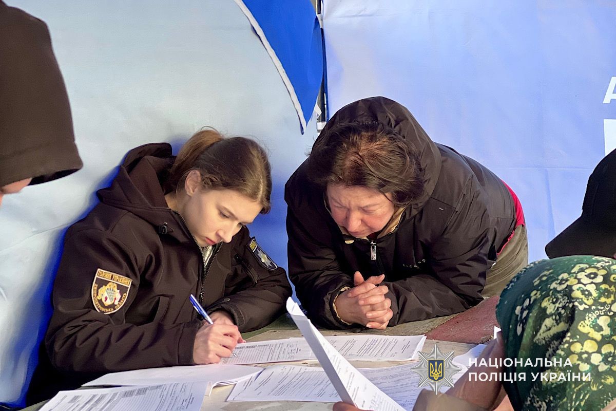 Слідчі продовжують приймати звернення громадян. Поліцейські проводять поквартирний обхід, документують руйнування та пошкодження житла, збирають речові докази й фіксують наслідки чергового воєнного злочину рф. Також на місці продовжує роботу мобільний пункт прийому звернень.