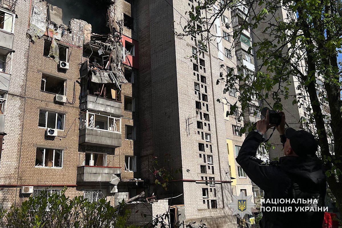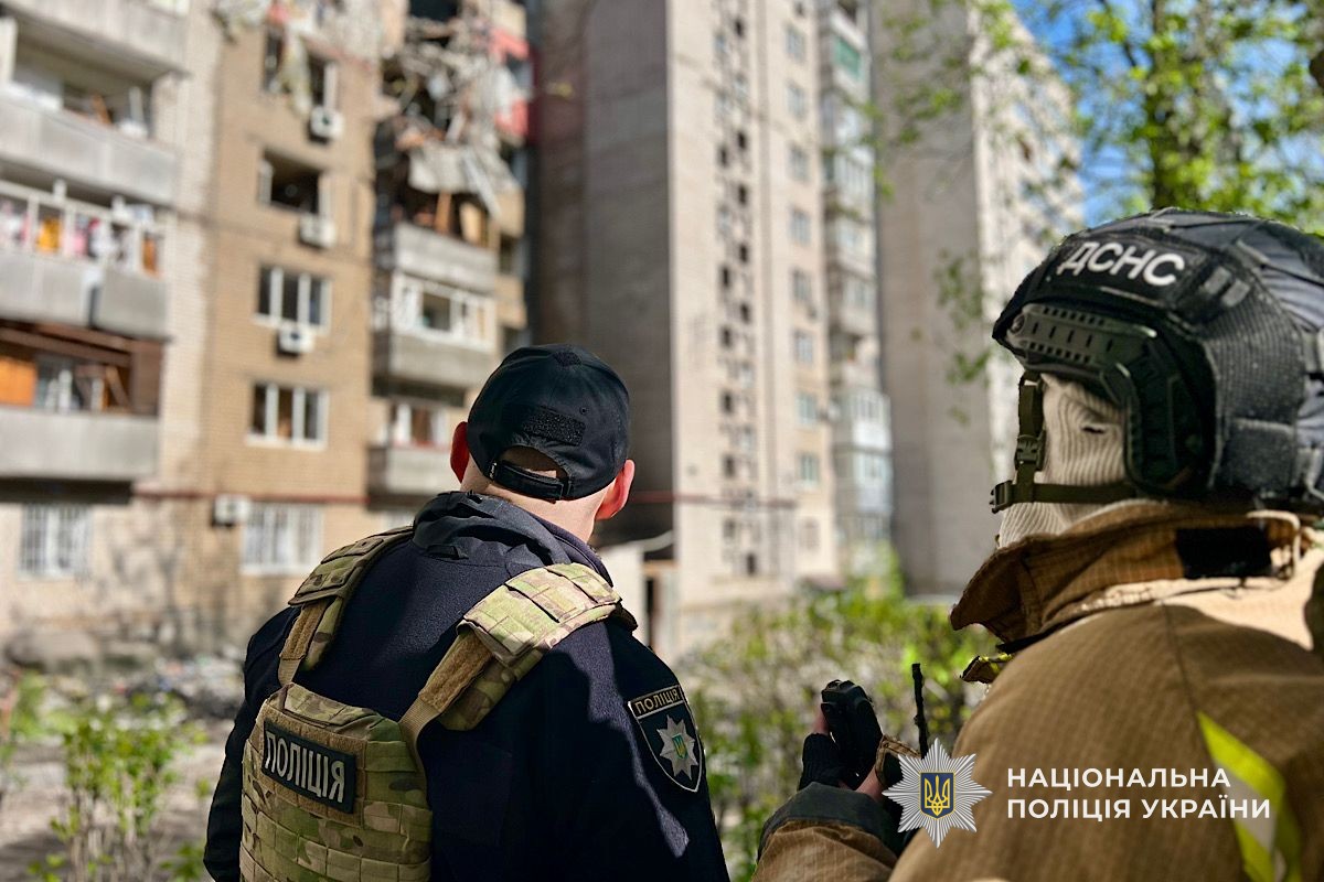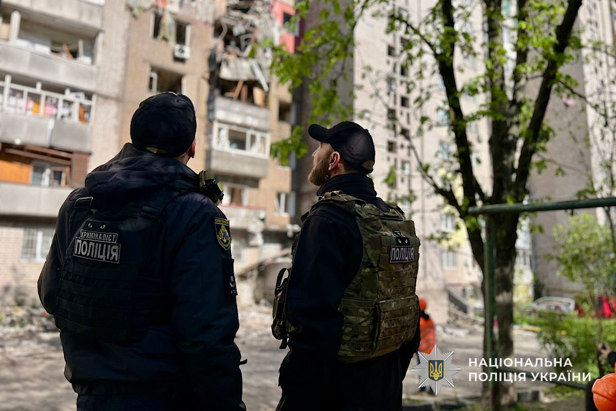У Дніпрі поліція продовжує працювати на місці ворожої атаки та документувати наслідки