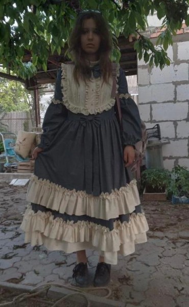 Була одягнена: сукня «Аліса в країні чудес», чорно-білі кеди. При собі мала наплічник бузкового кольору, гітару у чорному чохлі.