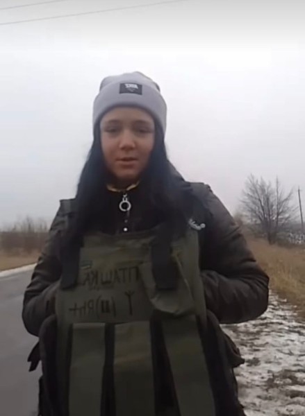 Була одягнена: рожево-перламутрова куртка до колін, спортивні бежеві штани, чорне взуття, бежевий рюкзак.