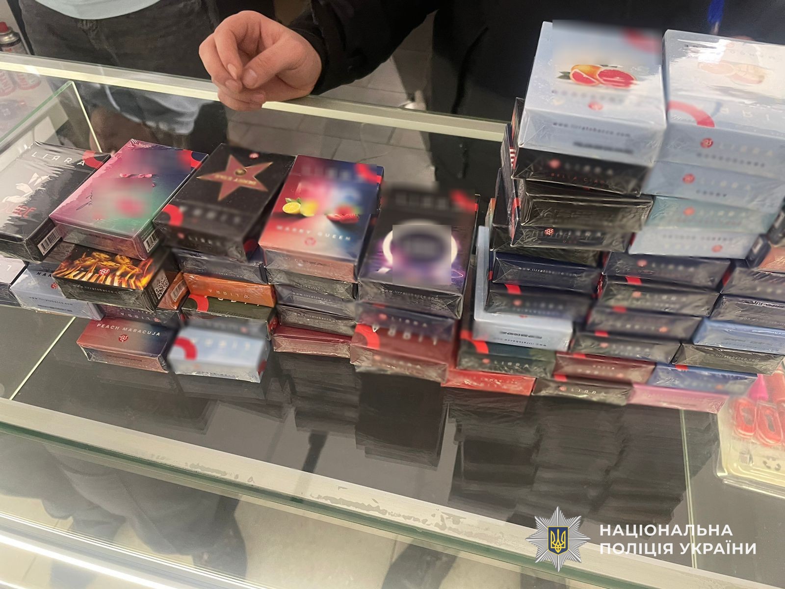 З незаконного обігу правоохоронці вилучили понад 1,1 тисячі пачок цигарок та 50 електронних сигарет, близько 110 картриджів з рідиною для електронних пристроїв, близько 100 пачок тютюну для кальяну та понад 120 літрів алкоголю.