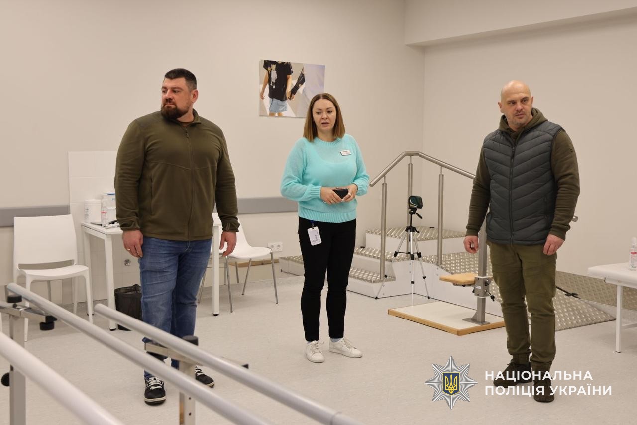 У рамках робочого візиту представники поліції ознайомилися з можливостями центру: сучасним протезуванням, комплексною фізичною реабілітацією, психологічним супроводом та підходами до повернення пацієнтів до активного життя після тяжких травм.