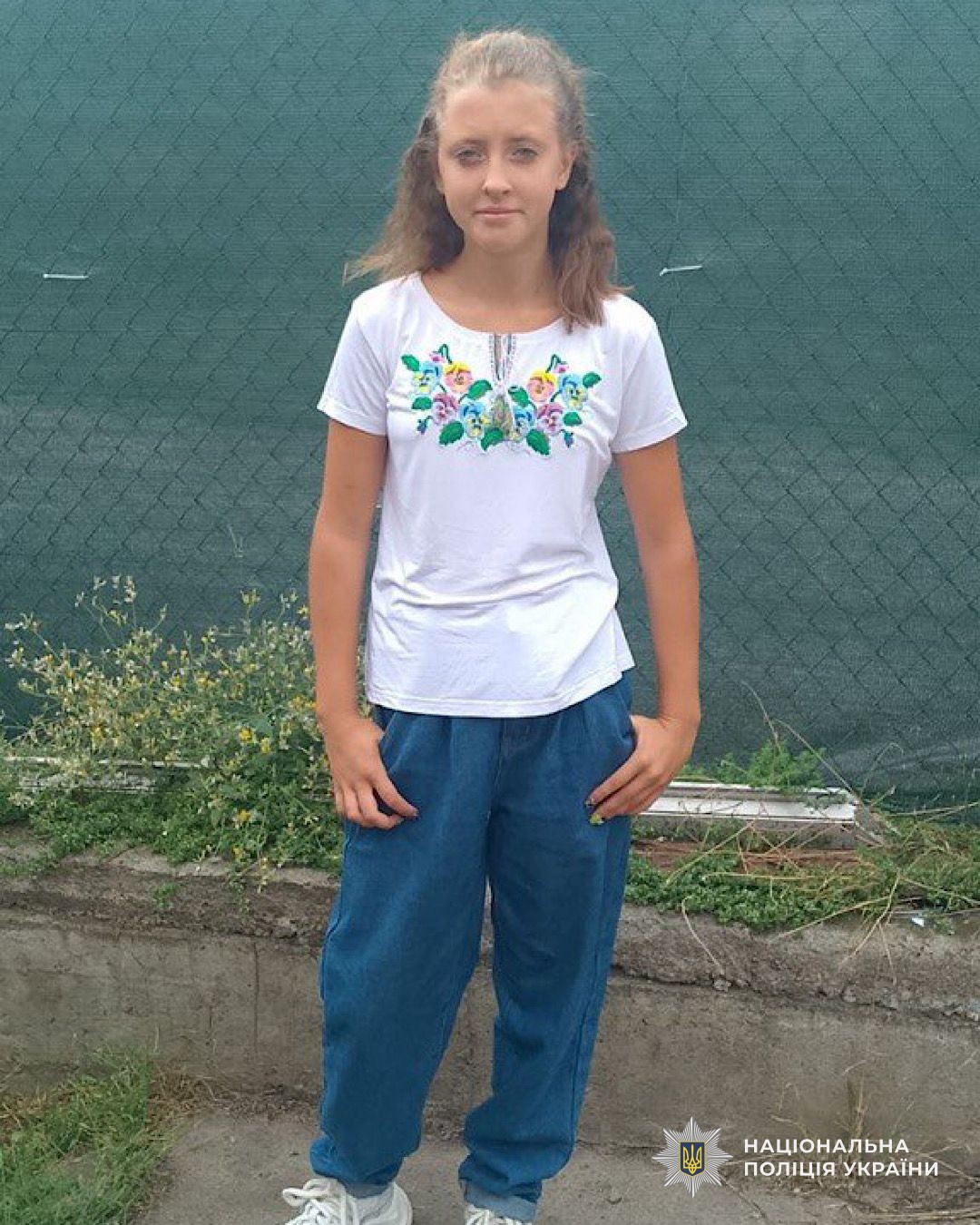Прикмети: на вигляд 12-14 років, зріст 158 см, худорлява, біляве волосся, блакитні очі.