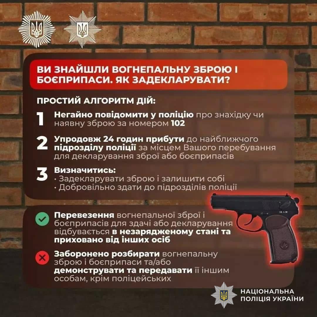 Повідомте про наявність зброї чи боєприпасів і отримаєте фахову консультацію щодо подальших дій;