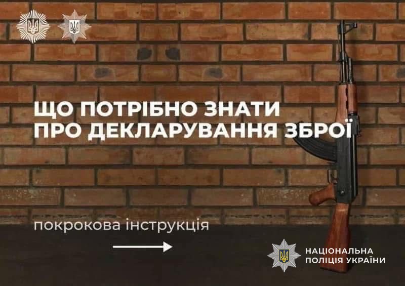 Із 25 листопада 2024 року в Україні розпочато офіційну процедуру добровільного декларування вогнепальної зброї та боєприпасів, які перебувають у громадян без відповідних дозвільних документів.