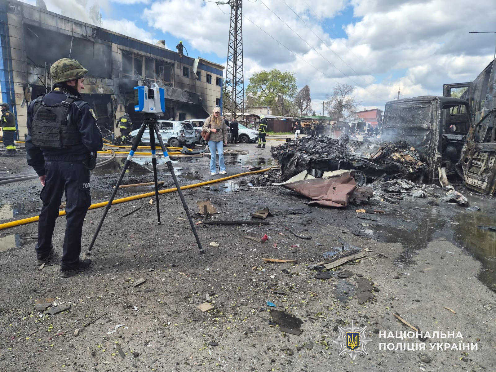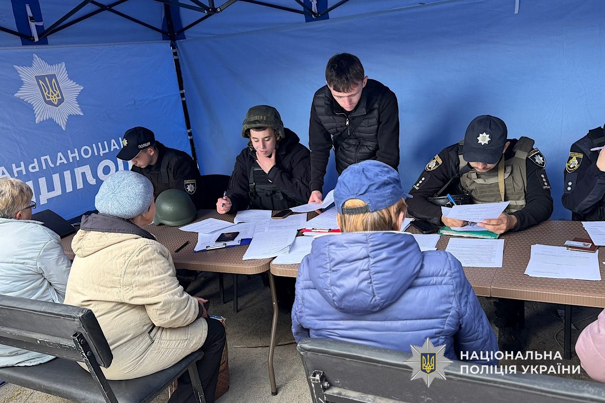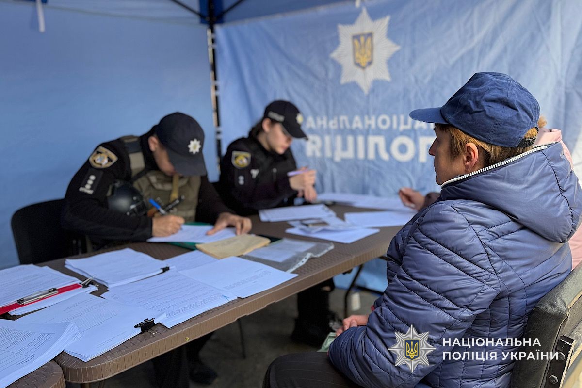 Поряд з місцем ураження поліцейські розгорнули пункт прийому звернень громадян, де люди можуть подати заяви щодо пошкодженого майна.
