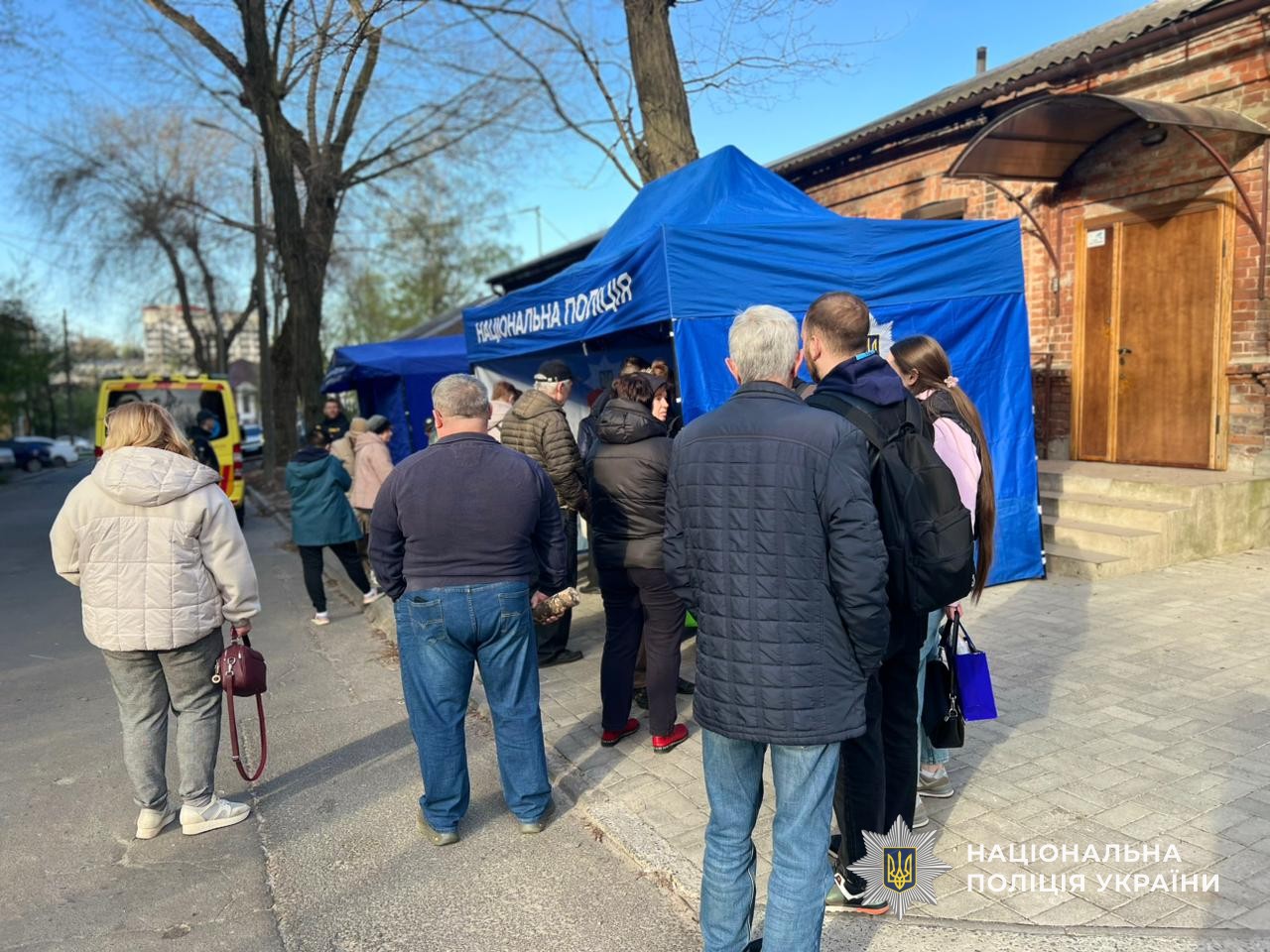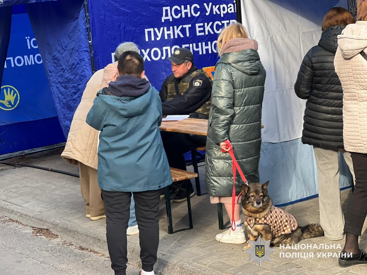Поряд з місцем ураження поліцейські розгорнули пункт прийому звернень громадян, де люди можуть подати заяви щодо пошкодженого майна.