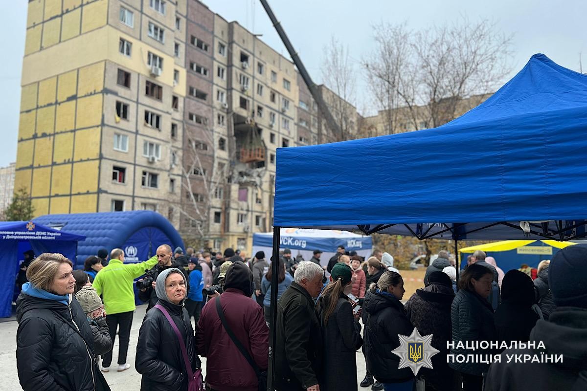 Поліція продовжує працювати на місці масованої атаки на Дніпро та приймати заяви від постраждалих громадян
