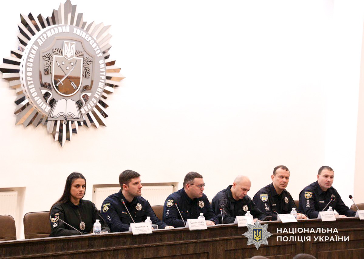 Сьогодні, 22 січня, у Дніпропетровському державному університеті внутрішніх справ відбулася інструктивна нарада офіцерів Служби освітньої безпеки за участі заступника начальника ГУНП в Дніпропетровській області Володимира Богоноса, начальника відділу ювенальної превенції управління превентивної діяльності ГУНП в Дніпропетровській області Вікторії Гаркач, ректора Дніпропетровського університету внутрішніх справ Олександра Моргунова та начальника управління поліції охорони в Дніпропетровській області Костянтина Пучкова.