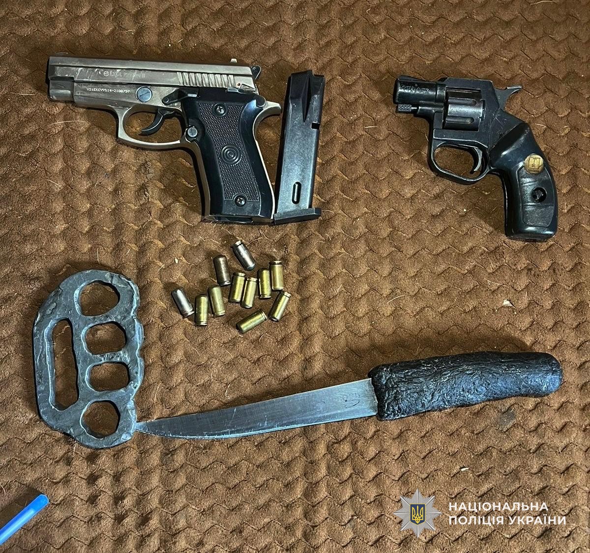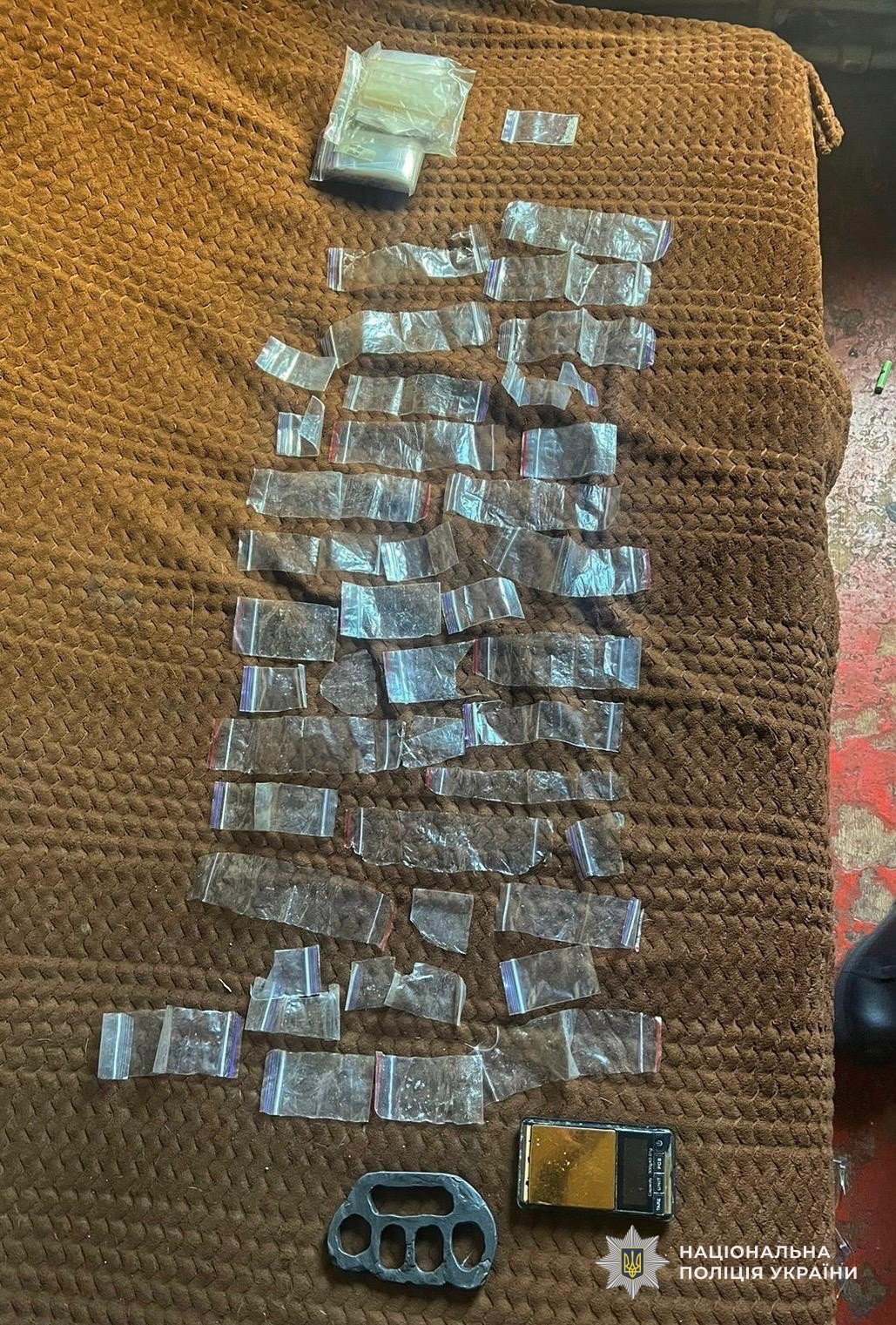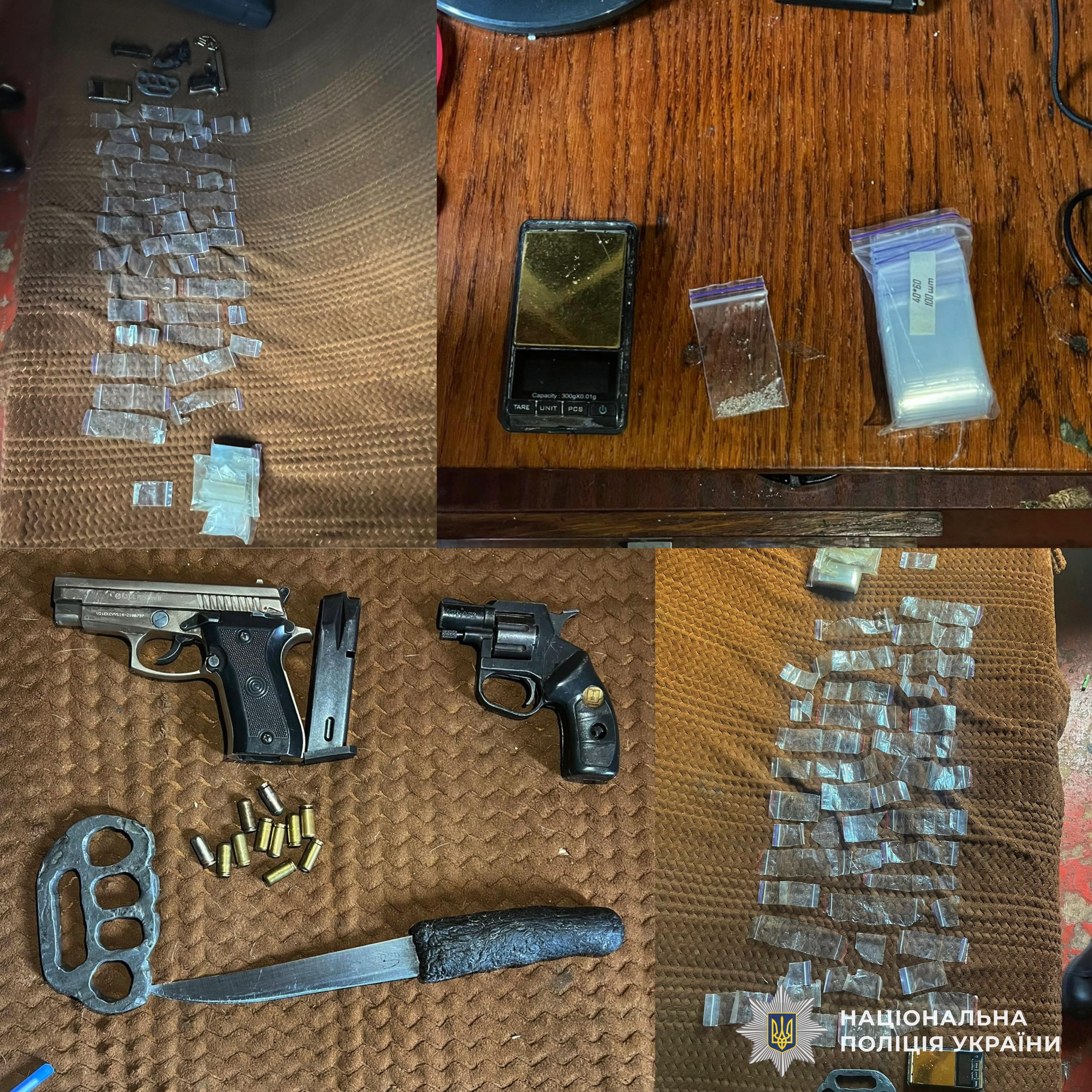 6 листопада поліцейські провели обшук за місцем мешкання фігурантки, під час якого вилучили зброю з ознаками переробки, набої, кастет, сліп-пакети із залишками наркотиків та ваги.