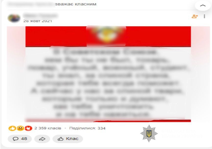 Поліцейські встановили, що протягом тривалого часу 59-річний фігурант поширював дописи з агітацією за комуністичний режим та фотографіями забороненої символіки.
