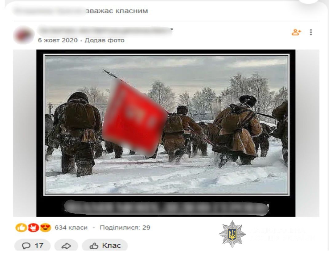 На власній сторінці у забороненій в Україні соціальній мережі чоловік публікував фотографії з атрибутами тоталітарного режиму.