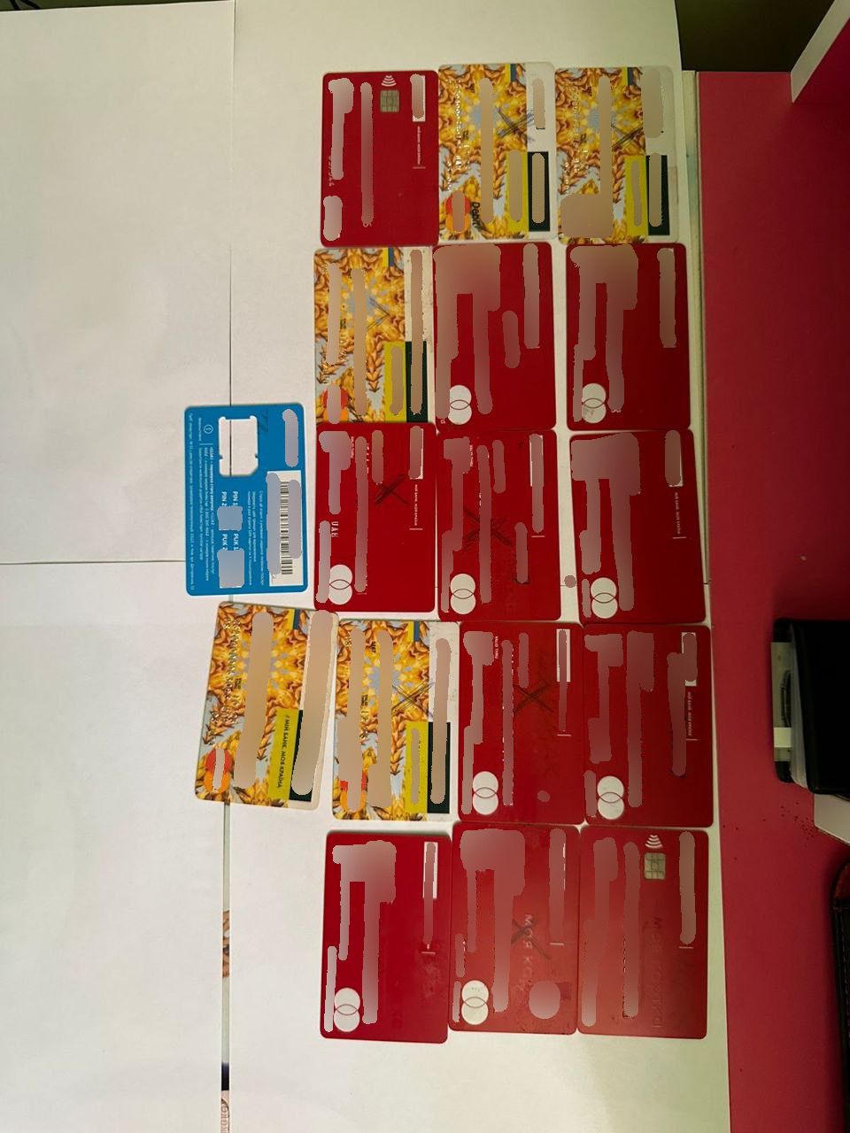 Правоохоронці провели 2 санкціоновані обшуки, в ході яких вилучили близько 30 сім-карт, декілька мобільних телефонів, 20 банківських карток, підроблені договори про надання послуг із працевлаштування, флеш-накопичувачі, «чорнові» записи, ноутбук та планшет.