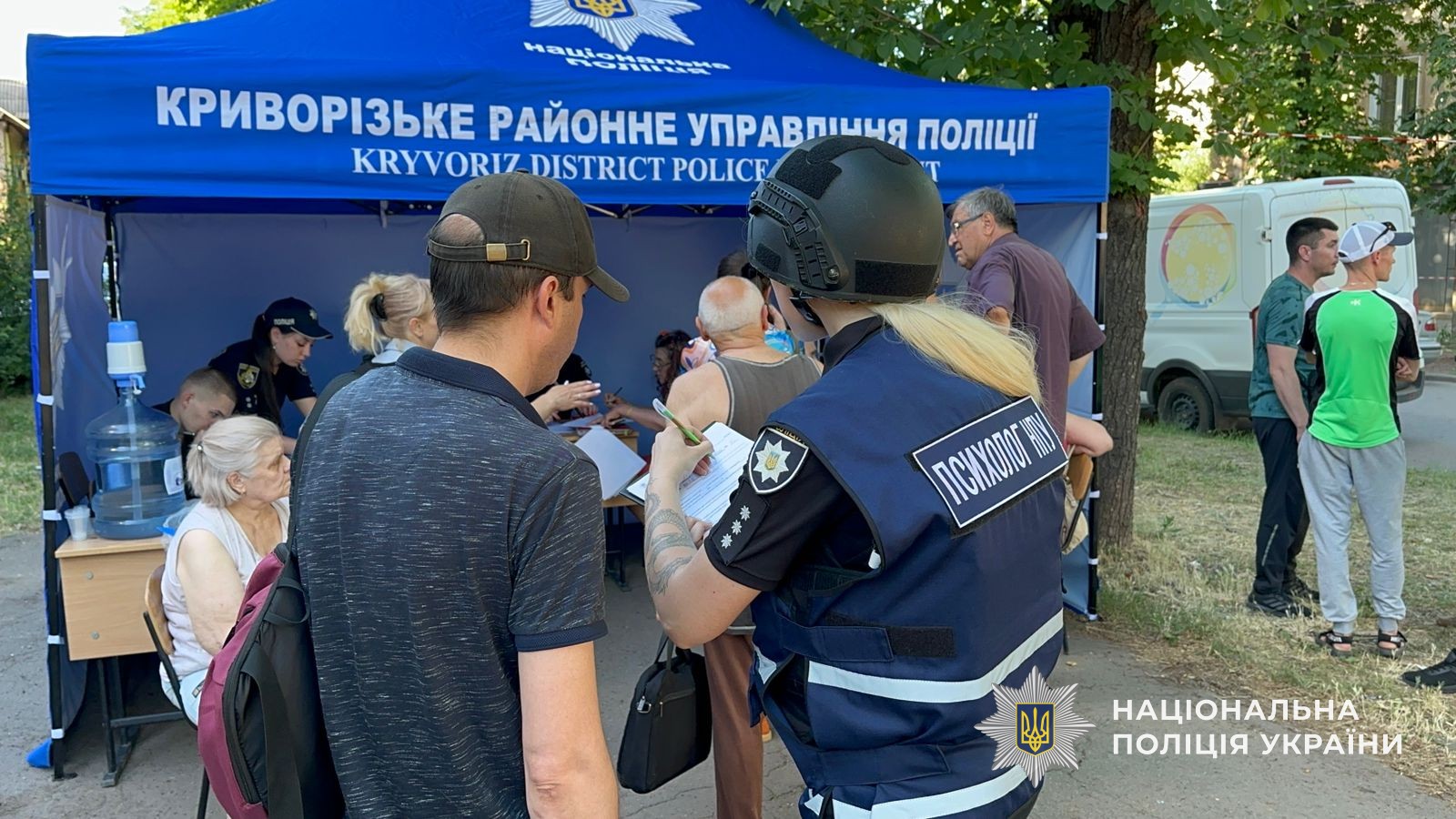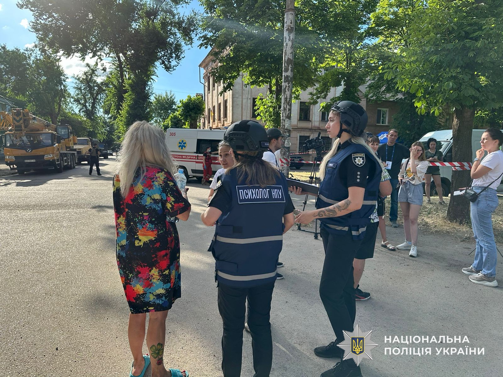 На місці працюють рятувальні та екстрені служби. Правоохоронці надають допомогу пораненим та приймають заяви від постраждалих людей. Вибухотехніки оглядають місце вибуху для виявлення небезпечних уламків. Психологи поліції працюють з людьми, які перебувають у гострому стресовому стані. Слідчі та фахівці криміналістичної лабораторії фіксують наслідки російського терору. Триває збір речових доказів та документування воєнного злочину.