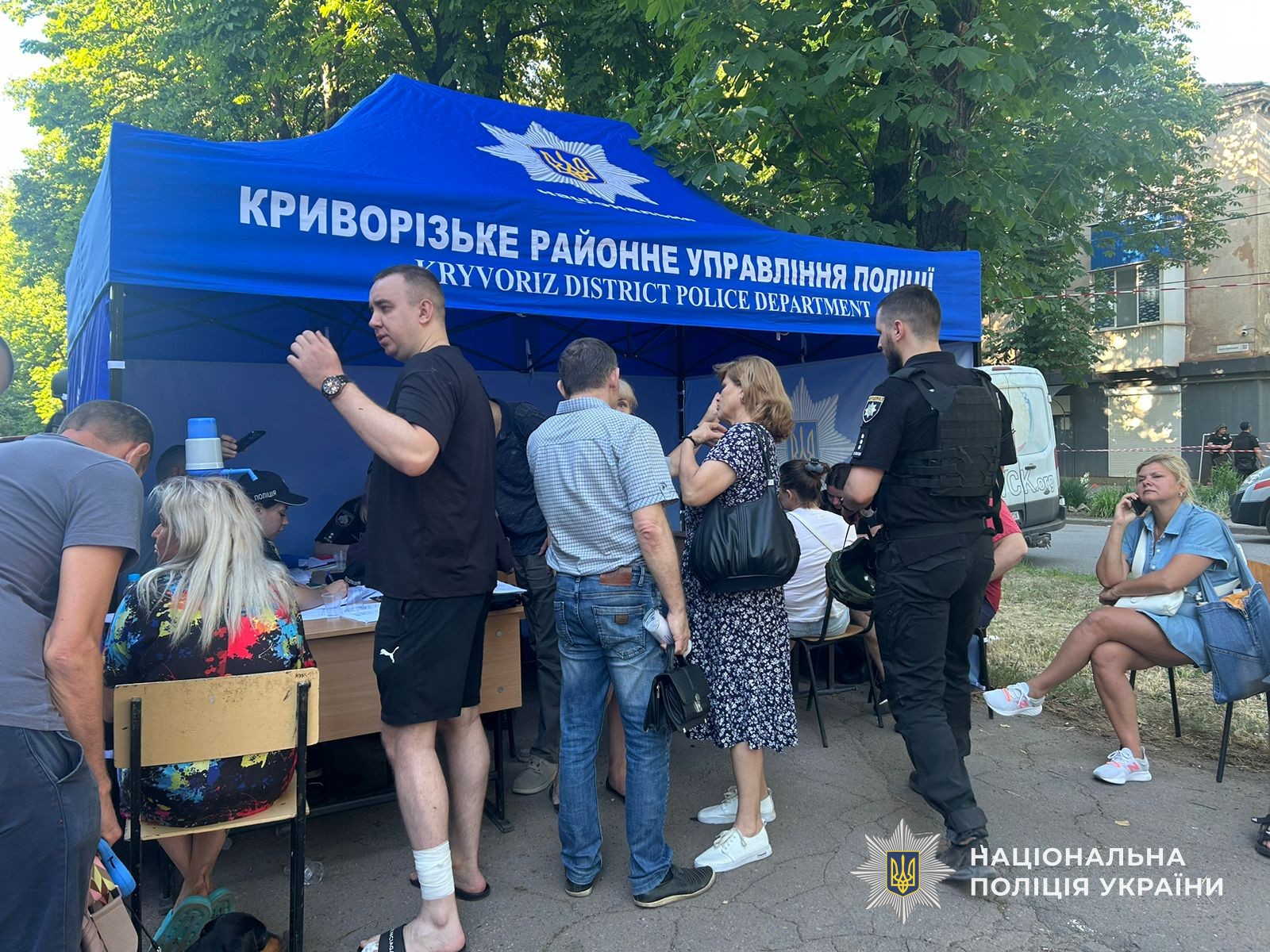 На місці обстрілу розгорнуто мобільний пункт прийому звернень. Наразі до поліції надійшло понад 40 заяв від потерпілих.