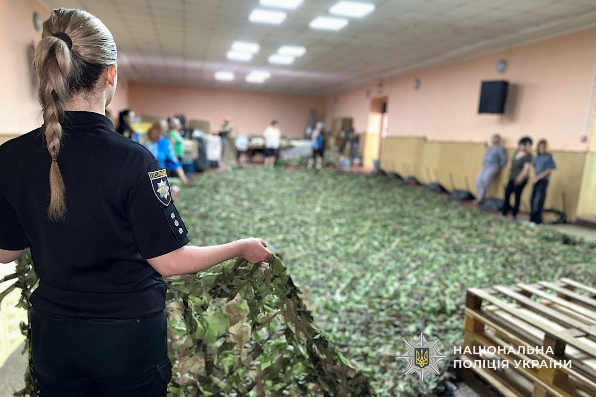 Працівники Нікопольського районного управління поліції долучилися до ініціативи місцевих волонтерів і взяли участь у плетінні маскувальних сіток для потреб Збройних сил України. Ці сітки незабаром вирушать на один із найгарячіших напрямків фронту.