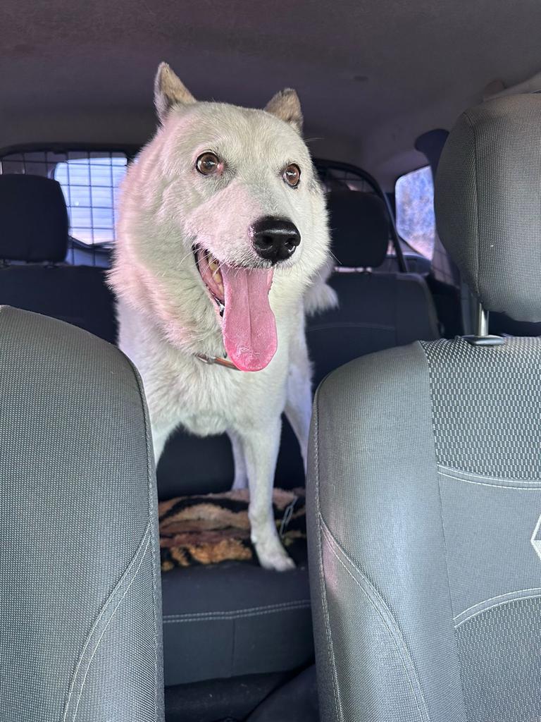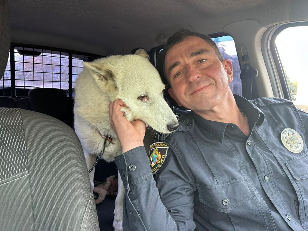 Друга собака породи «лайка» на ім’я Вовк - родом з деокупованої Харківщини. Він прихистив її декілька місяців тому. Валерій поділився історією порятунку травмованого собаки, який одного дня сам підбіг до нього під час патрулювання. Йому стало шкода песика і він вирішив, що в його домі точно знайдеться місце і для цього песика. Поліцейський відвіз його до ветеринара, купив усі необхідні ліки та вітаміни. «Ім’я дав - Вовк, бо він дійсно схожий на дикого звіра, часто кусається і має норовливий характер. Пізніше я дізнався, що його евакуювали з деокупованої території Харківської області, а хазяїна до цього часу так і не вдалося знайти», - розповідає поліцейський.