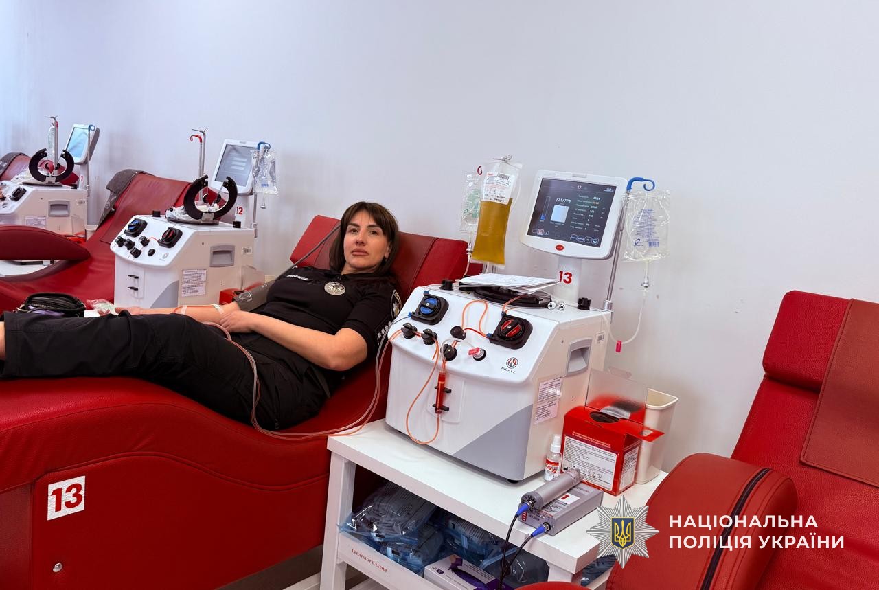 27 березня правоохоронці відвідали донорський центр «Biopharma Plasma» у Дніпрі та здали плазму, яка використовується для виготовлення життєво необхідних препаратів.