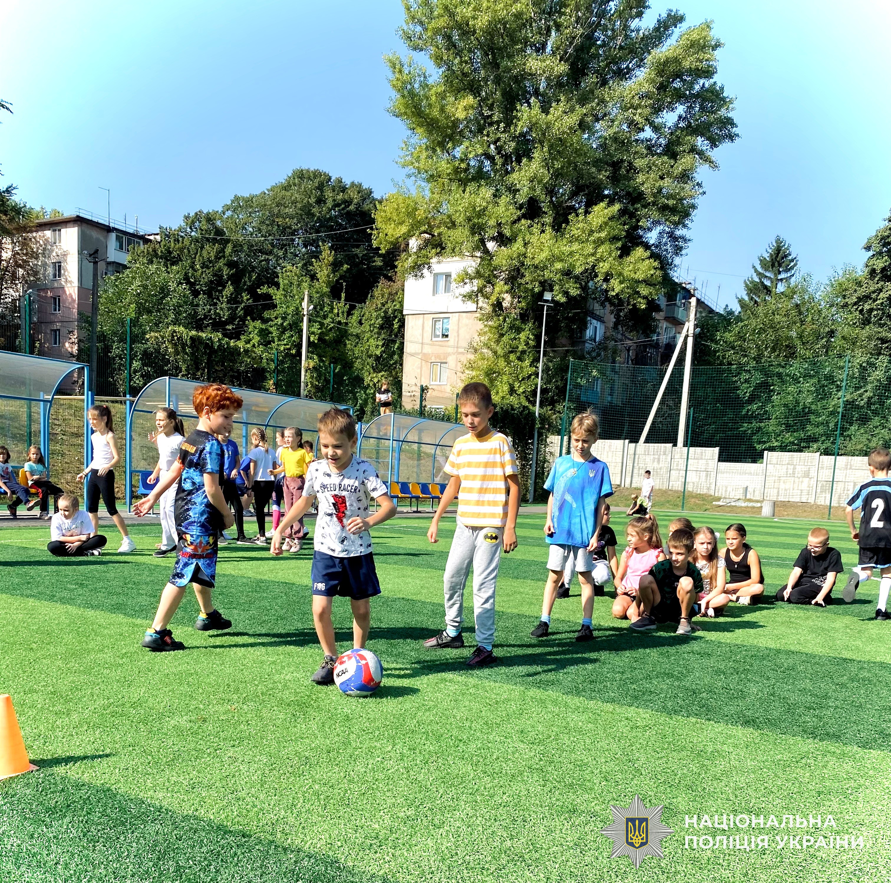 Тож Інспекторка СОБ розпочала захід з енергійної розминки. Далі діти змагалися в естафетах: обводили м’яч навколо кеглів, переправляли команду на «інший берег», передавали м’яч над головою – все це не тільки про фізичний розвиток, але й про командну роботу та взаємодію.