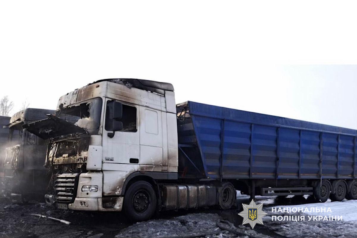 Надалі, 2 січня, чоловік здійснив підпал на території автостоянки, де об’єктами злочину стали два вантажні автомобілі з напівпричепами. Діючи аналогічним способом, він спричинив займання транспортних засобів та покинув місце події.