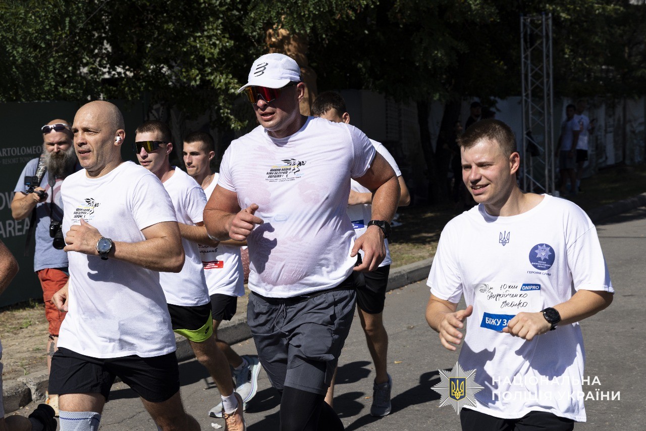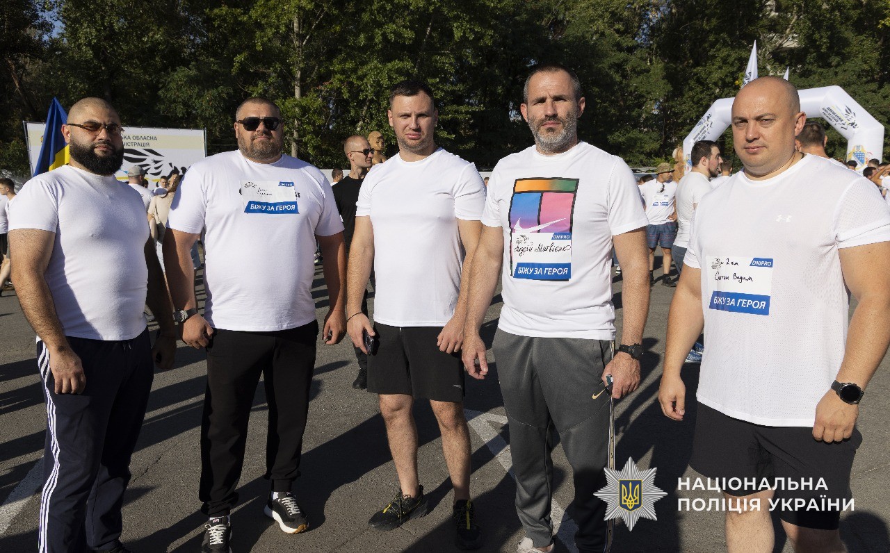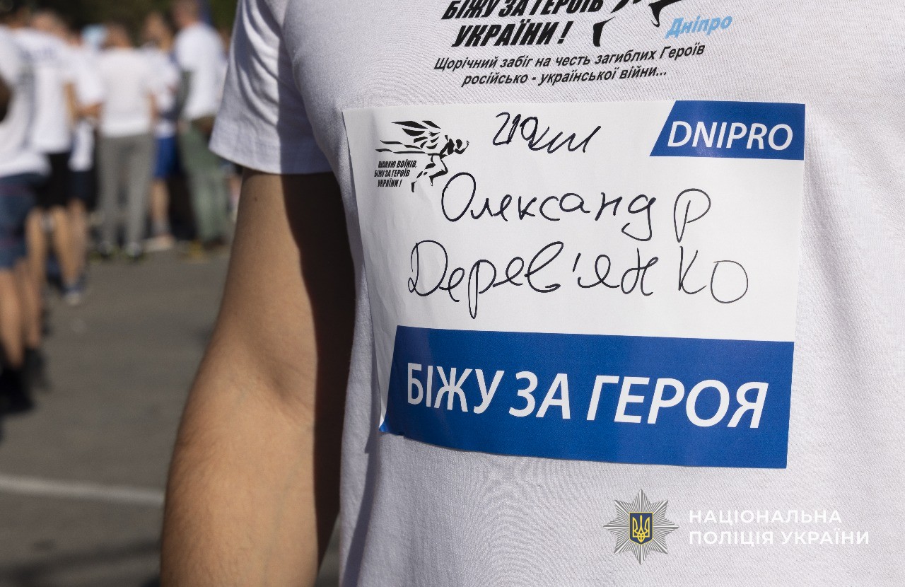 В пам’ять про них учасники закріпили на футболці ім'я Героя, який віддав життя, боронячи Україну. Разом з професійними спортсменами, ветеранами та просто охочими мешканцями регіону подолати дистанцію на честь загиблих колег прибули поліцейські з усіх районів Дніпропетровщини.