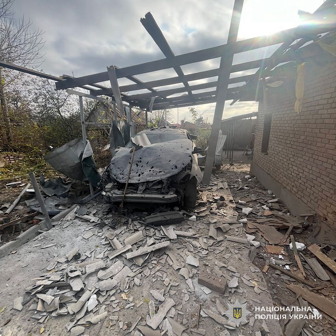 Впродовж доби 8 листопада армія рф завдала понад трьох десятків ударів по Нікопольському району. Била артилерією та FPV-дронами по Нікополю, селах Мирівської та Покровської сільської громади. Поліцейські опрацювали 26 повідомлень про обстріли. На місця були скеровані слідчо-оперативні групи. В ході обстеження уражених територій слідчі вилучили речові докази та задокументували пошкодження автомобіля, господарських споруд та понад десятка приватних будинків - одна оселя була охоплена полумʼям. Потрощено покрівлі, стіни та стелі, вибито шибки на вікнах, понівечено фасади, огорожі та майно в середині осель.