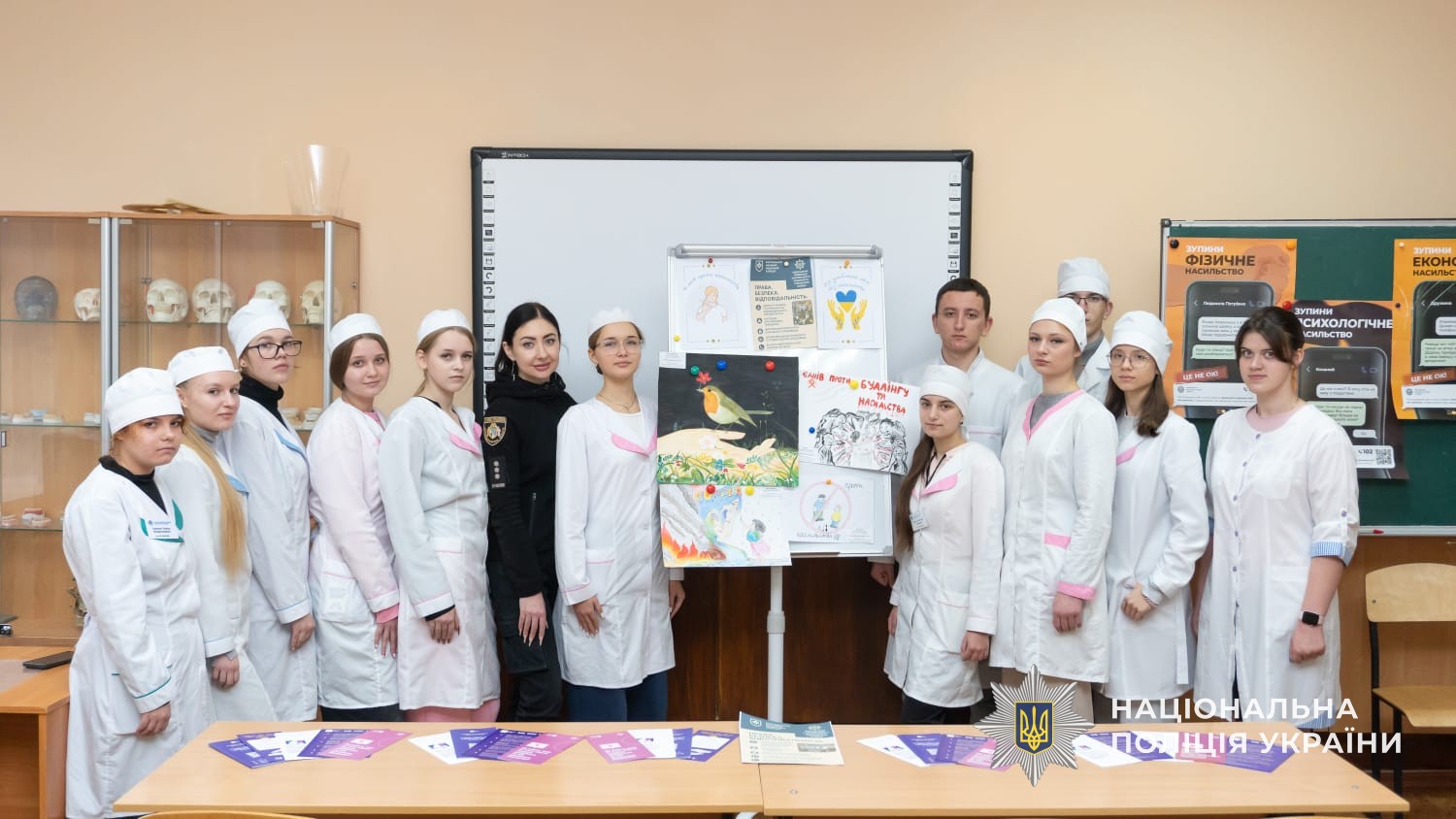 Заступник начальника сектору ювенальної превенції Любов Головій обговорила зі студентами медичного коледжу одну з найважливіших тем сьогодення - запобігання насильству. Зустріч відбулася в атмосфері довіри та відкритості, де кожен мав можливість поставити питання й отримати фахові відповіді.
