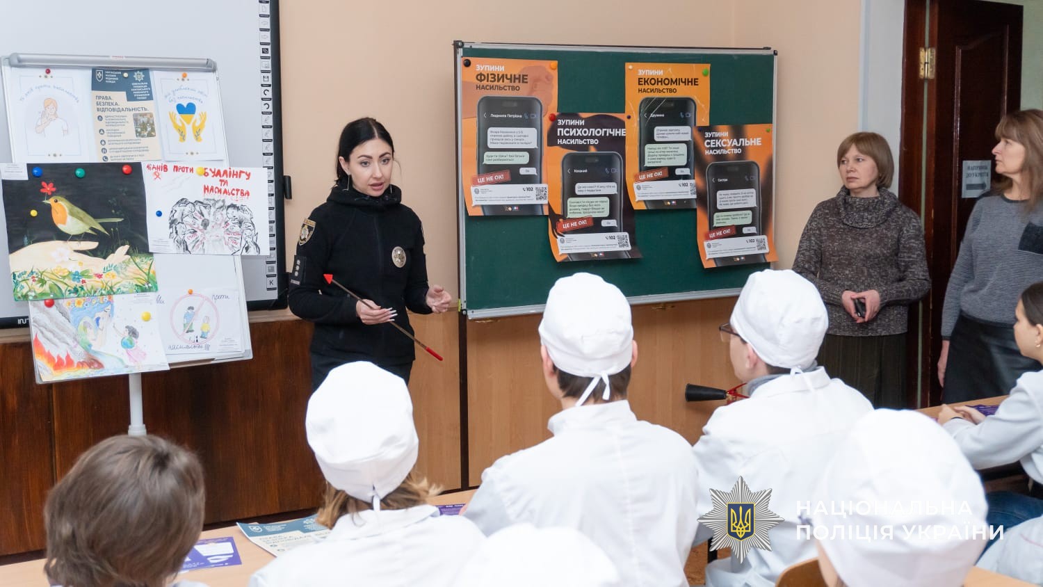 Поліцейська пояснила молоді, які форми насильства існують, як їх розпізнати та чому важливо не мовчати, коли стаєш свідком чи постраждалим. Особливу увагу приділила тому, куди можна звертатися по допомогу та як захистити себе і своїх близьких.