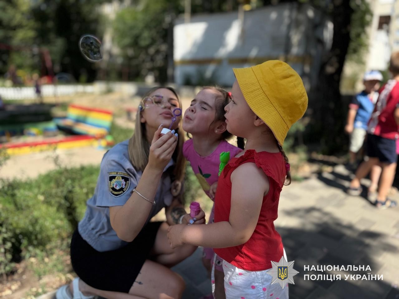 Час провели активно й корисно: в ході активних ігор правоохоронці розповіли про роботу поліції, показали елементи справжньої службової амуніції, а ще – згадали про дорожню абетку й пояснили навіщо носити світловідбиваючі елементи.
