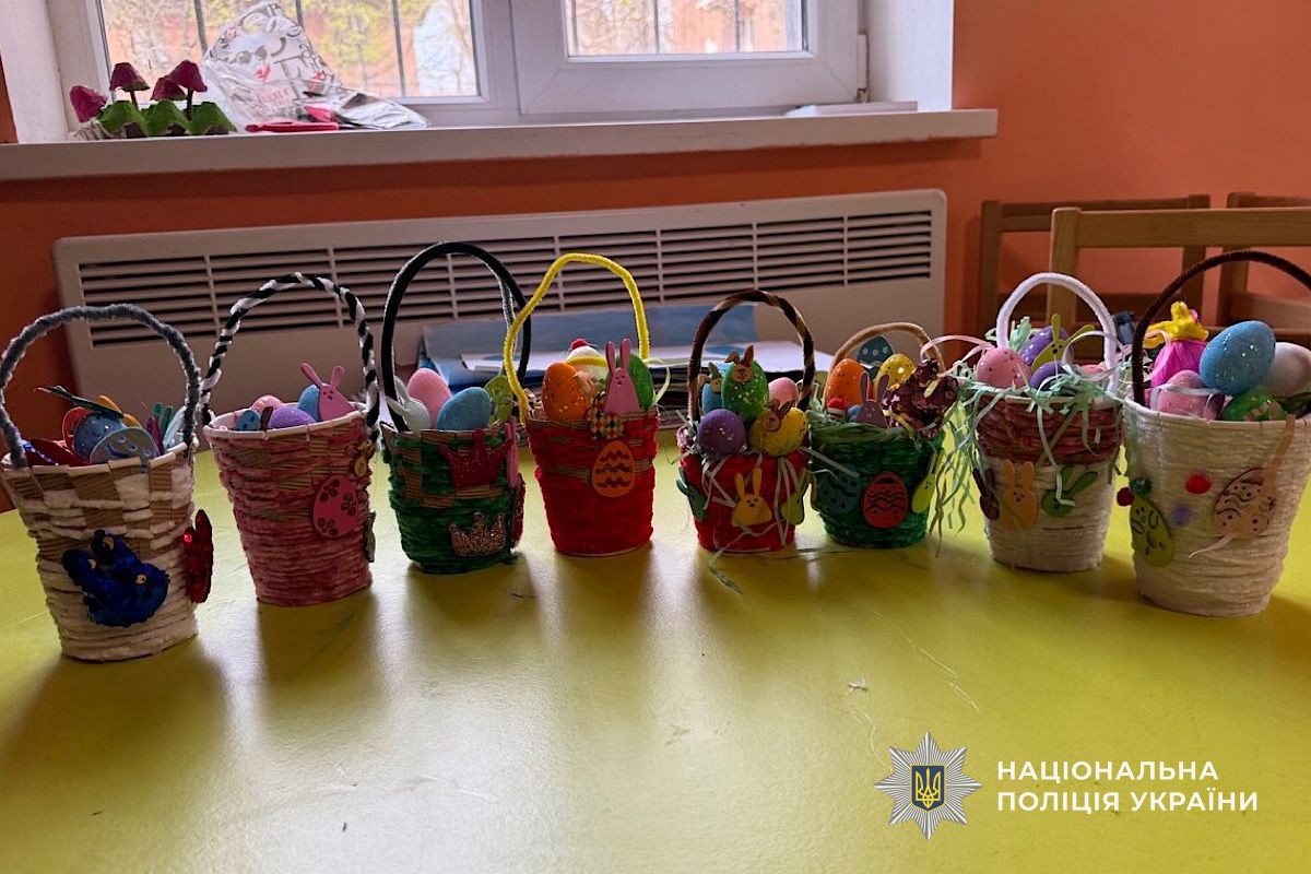 Для того, щоб корисна інформація сприймалася легше, поліцейські захопили дітей виготовленням великодніх кошиків — прикрашали їх, додавали яскраві деталі, залишаючи частинку тепла у кожній роботі.
