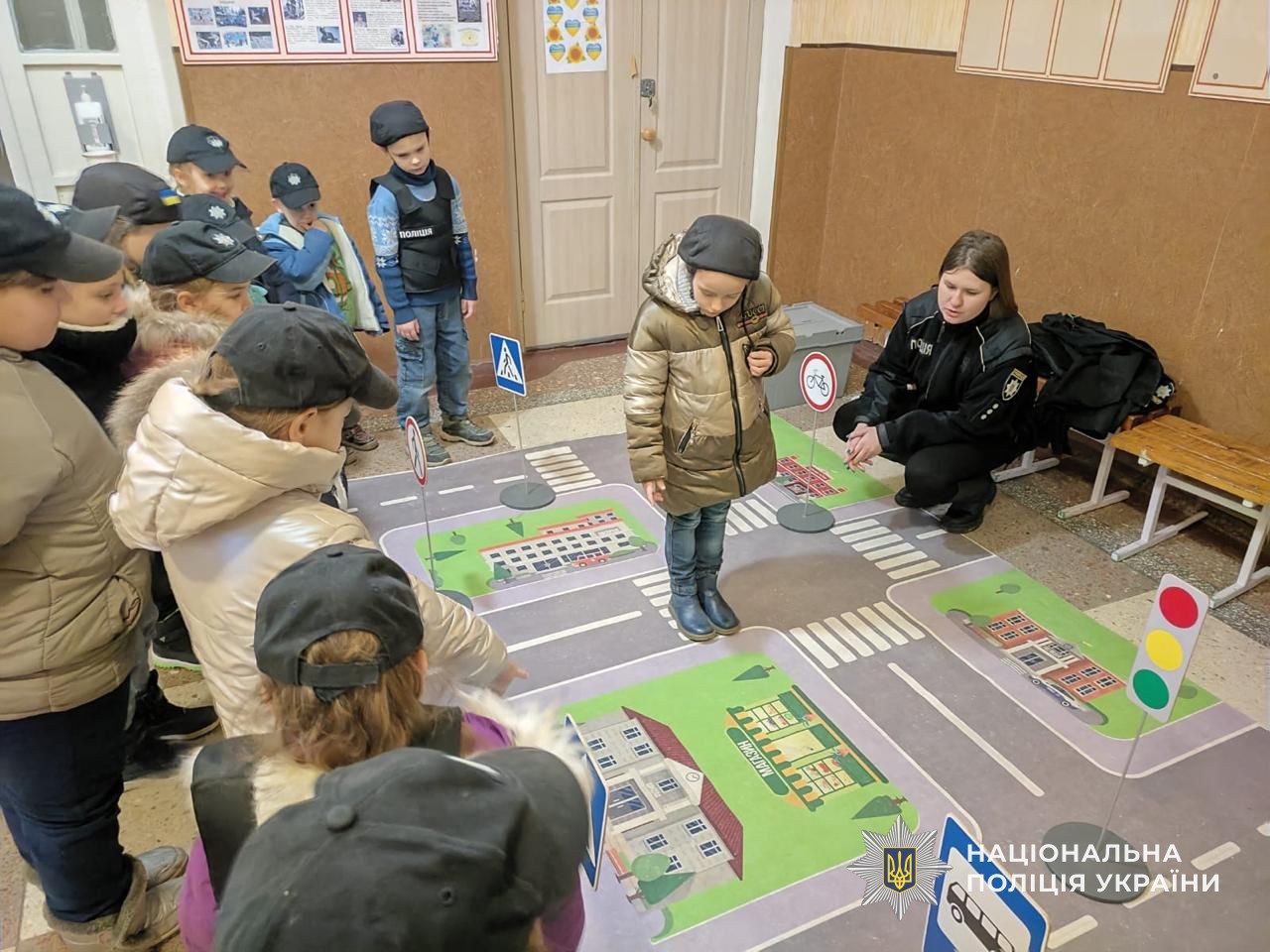 У процесі уроку правоохоронці в інтерактивній формі розповіли школярам про правила безпечної поведінки вдома, на вулиці та в громадських місцях. Повторили з дітьми дорожні знаки, якими сигналами світлофора регулюється рух транспорту та як правильно перетинати дорогу.